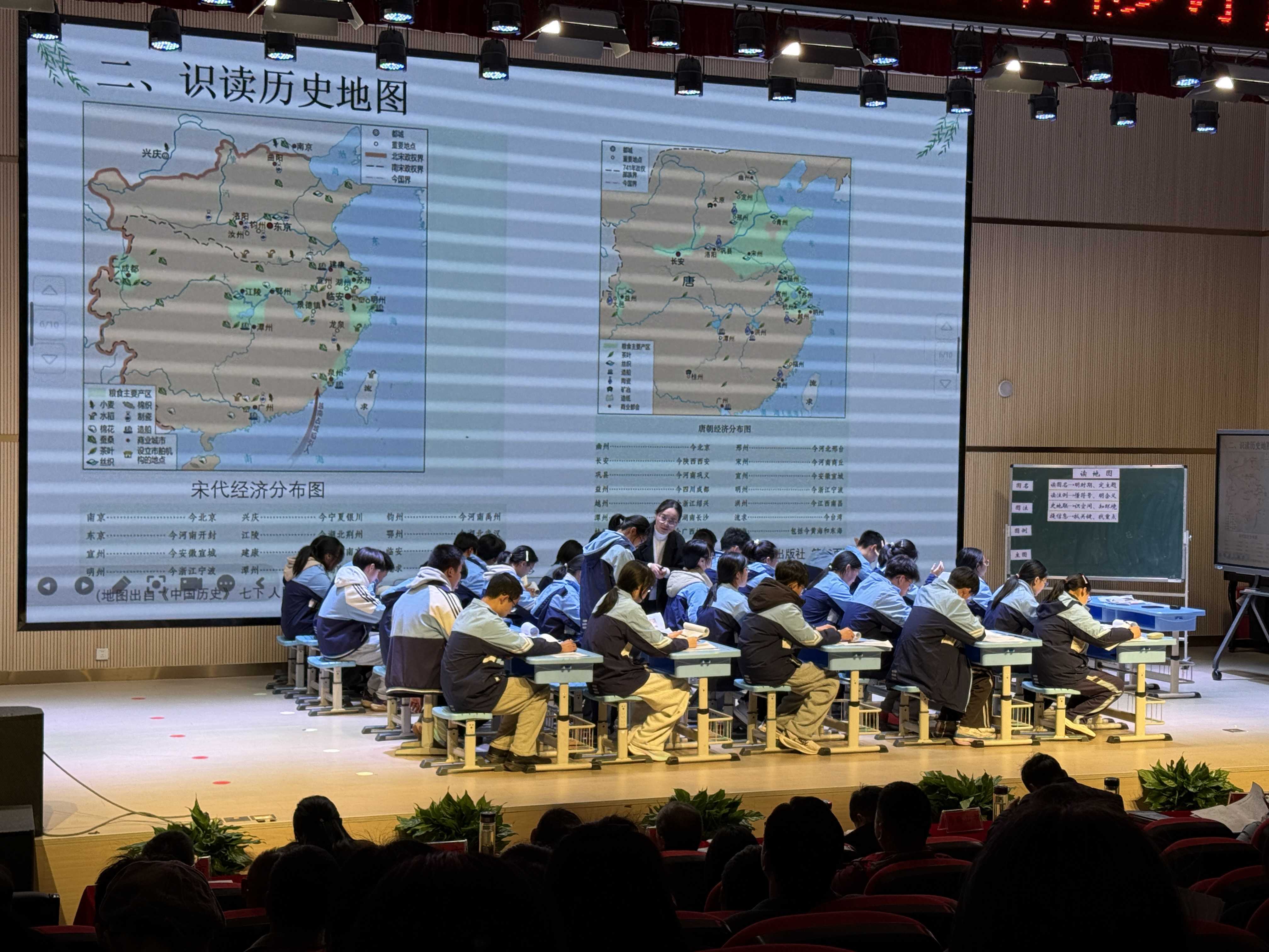 跨学科主题学习课例展示环节,广德市桃州初级中学北校区汪明芳老师带来的《读地图》课例,融合了历史、地理两门学科的核心知识,引导学生从地图变迁中理解历史发展脉络,获得参会教师的高度认可。