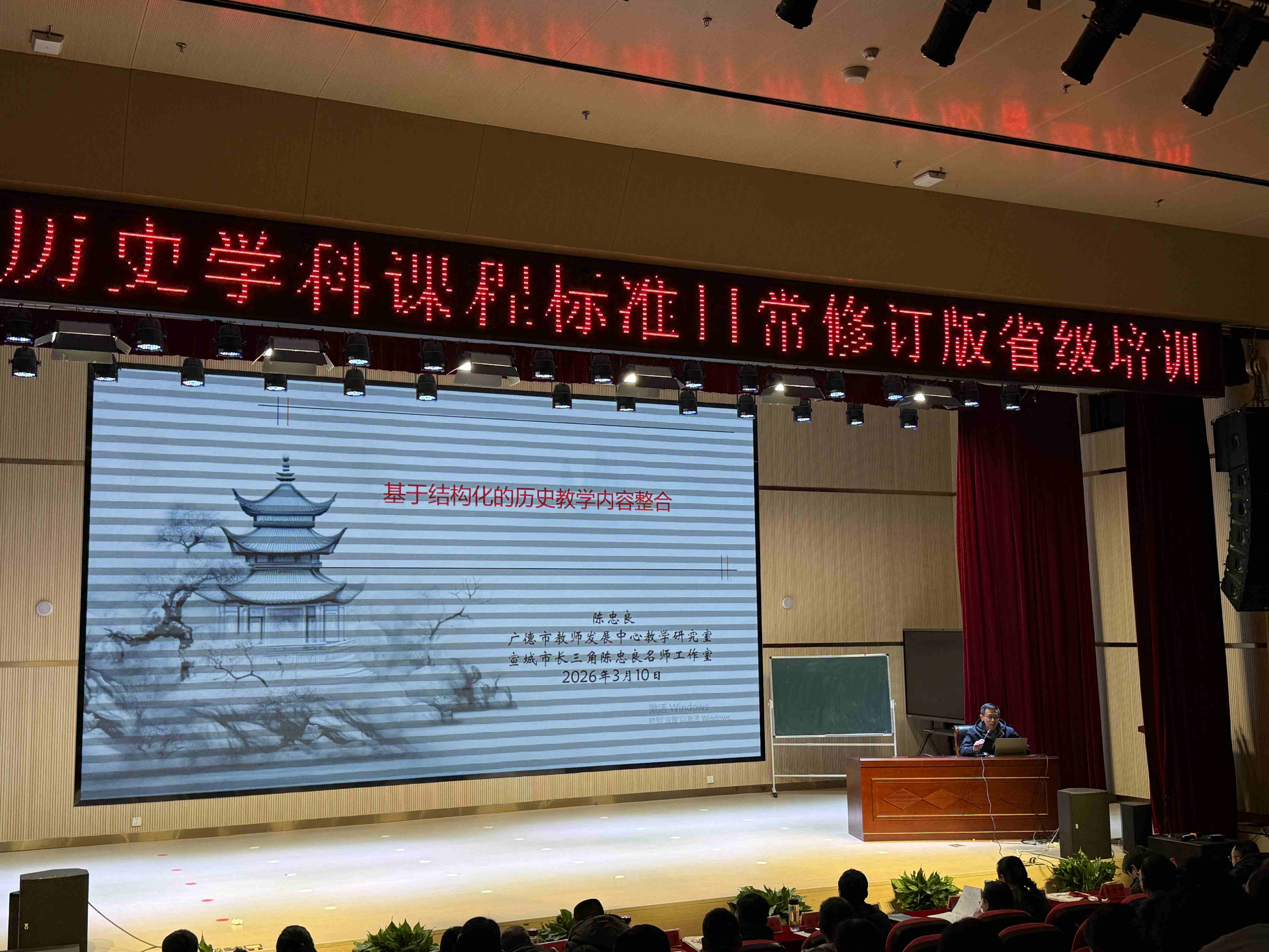 宣城市教学研究室杨亚丽老师、广德市教师发展中心陈忠良老师分别以《基于课标的教材解读》《基于结构化的历史教学内容整合路径》为题,为一线教师提供了新课标落地的具体操作策略。