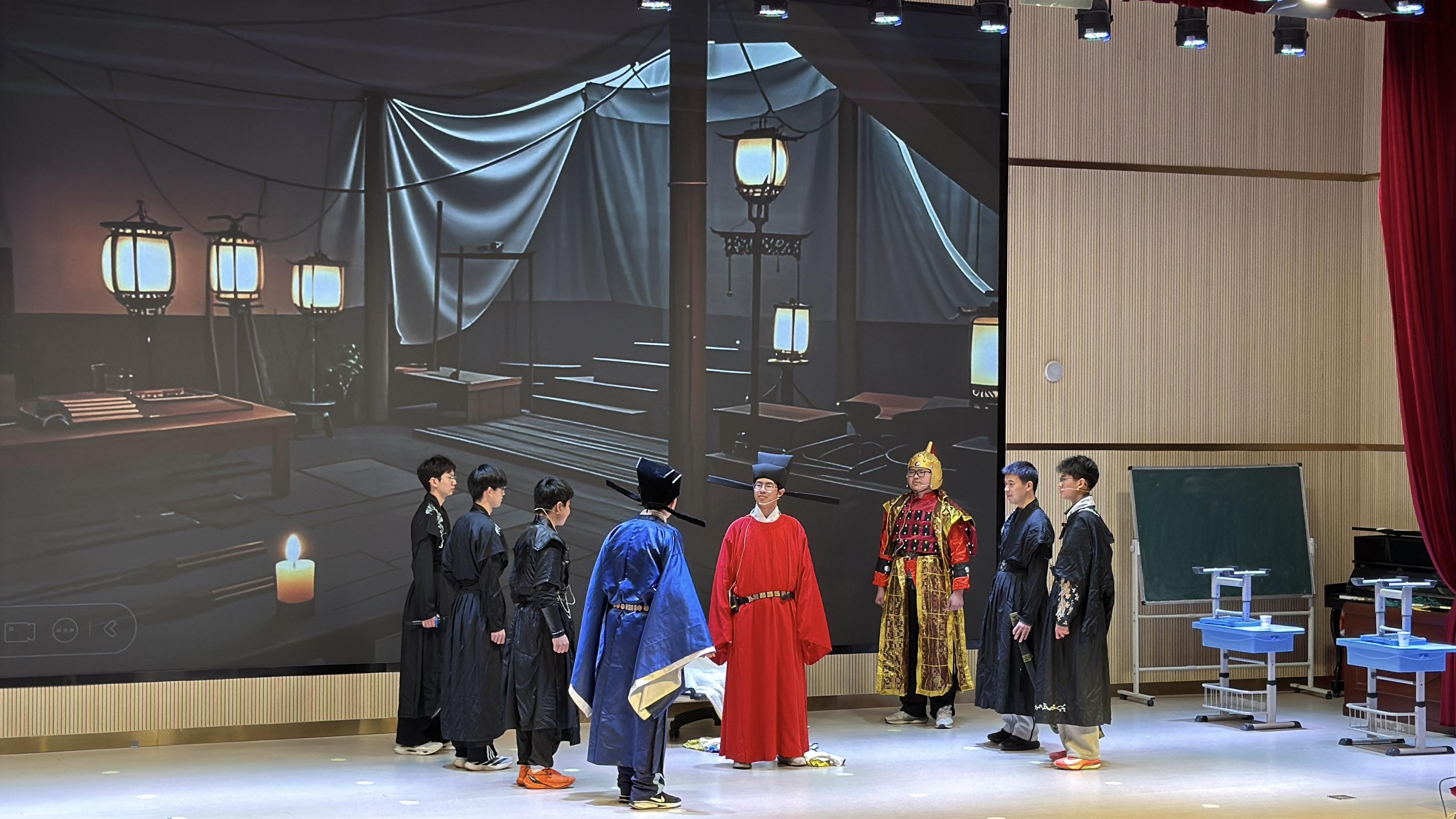 历史剧展演环节,广德市科创实验学校学生带来的原创历史剧《赵匡胤的煮酒人生》,通过生动的演绎还原了北宋初年的历史场景,获得全场一致好评。该校欧阳丽老师随后分享了历史剧社团的建设经验,提出“让学生在创编、演绎中理解历史逻辑”的实践育人思路。