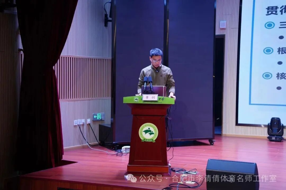最后,安徽省教育科学研究院体育教研员吴桥做总结。吴老师先带领在场体育教师共同深入研读了《教育强国建设规划纲要(2024—2035年)》、《教育部关于全面推进健康学校建设的指导意见》等重要文件,深刻领会“健康第一”教育理念的时代内涵。然后吴老师部署了2026年安徽省体育与健康教研工作的几个重要方向,为不同市、区开展符合自己发展特色的体育教学教研明确了方向。