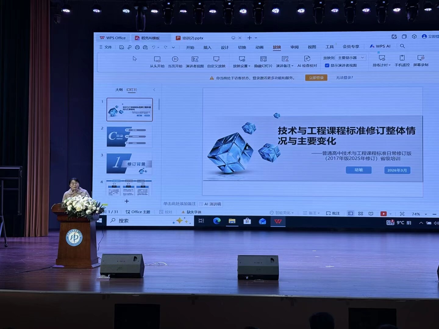为深入学习普通高中技术与工程课程标准修订的最新精神,精准把握学科教学改革方向,2026 年 3 月 26 日上午,合肥四中技术组教师吴家璐等一行赴合肥一中滨湖校区,参加安徽省普通高中技术与工程课程标准修订省级培训暨教研工作会议。本次会议由合肥一中技术学科主任罗晓燕老师主持,旨在为全省技术与工程学科教师搭建交流学习平台,推动新课标理念落地生根。