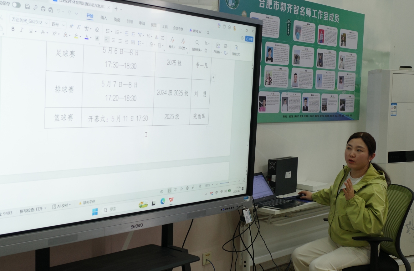 紧接着,张雨晖老师详细介绍了《合肥四中2026年首届“弘毅杯”体育活动周方案》。本次体育周以“红五月激扬活力,四球赛绽放风采”为主题,将于5月6日正式启动,涵盖足球、排球、篮球、太极拳、羽毛球等多项赛事,面向高一、高二年级全体学生,预计参与人数将创历史新高。在方案研讨环节,教务处主任朱婷婷对活动的组织细节提出了具体指导建议。朱主任强调要科学安排赛程、做好安全预案、强化班主任与体育委员的协同配合,确保活动安全、有序、高效开展。