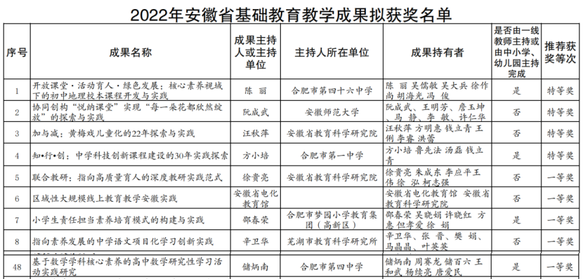 合肥四中教师荣获2022年安徽省基础教育教学成果奖一等奖