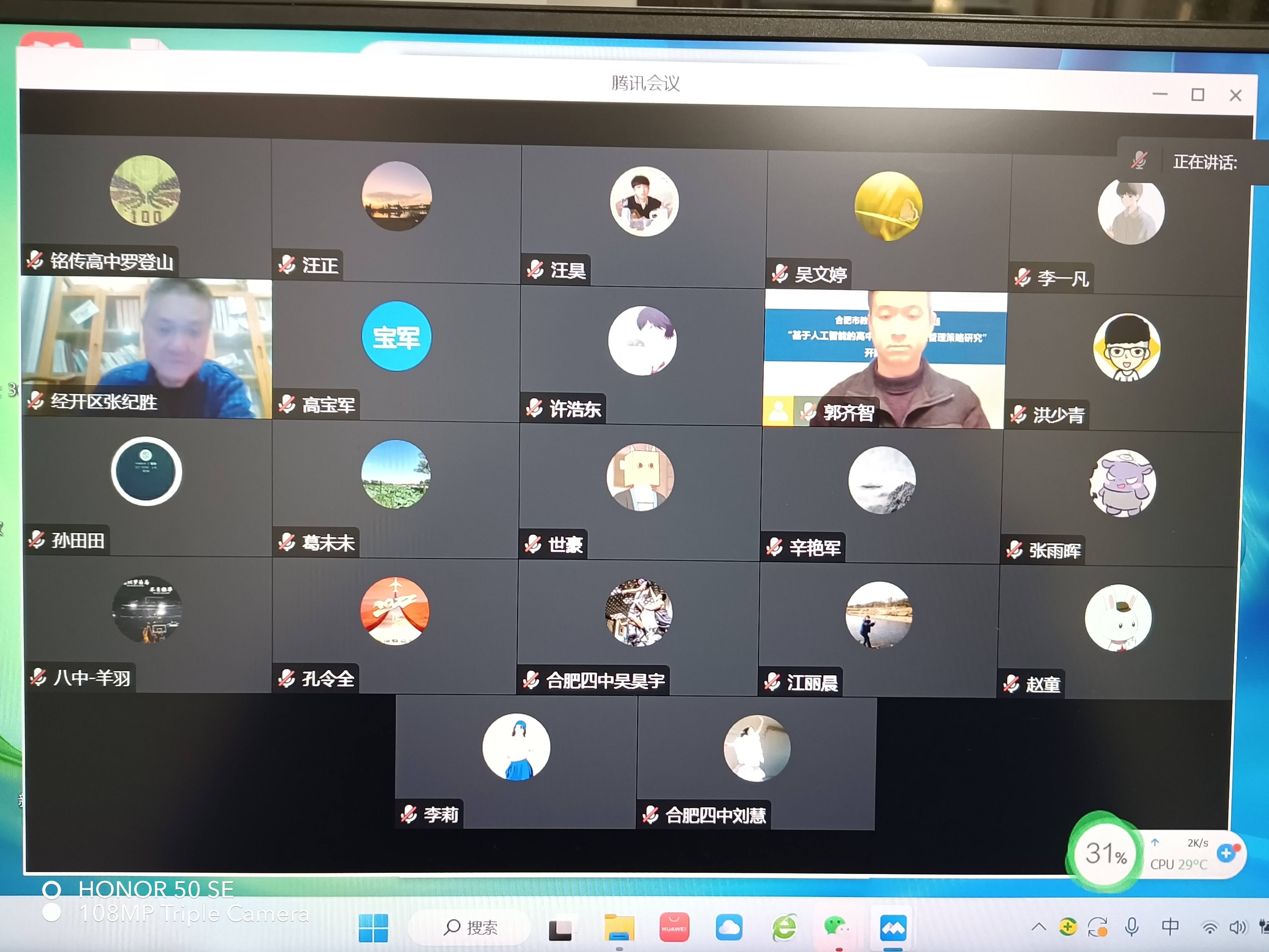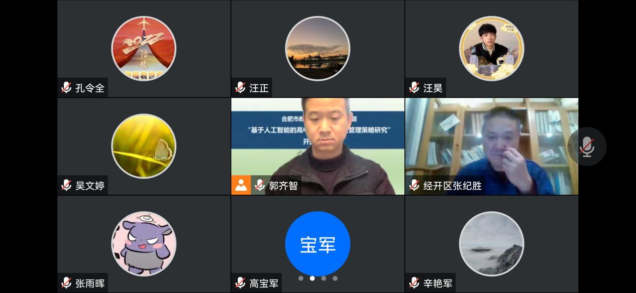 2022年12月27日晚19:00—22:00,合肥四中体育教研组在腾讯会议举行了线上“基于人工智能的高中体育选项走班管理策略研究”开题论证会。本次线上课题论证会由合肥市装备电教中心主任郭佐铭主持,并邀请了安徽省能源技术学校校长章斌和经开区教研员、正高级教师张纪胜两位专家进行指导。合肥市郭齐智名师工作室部分成员、学员和所有课题组成员共30多人参加了本次线上课题论证会。