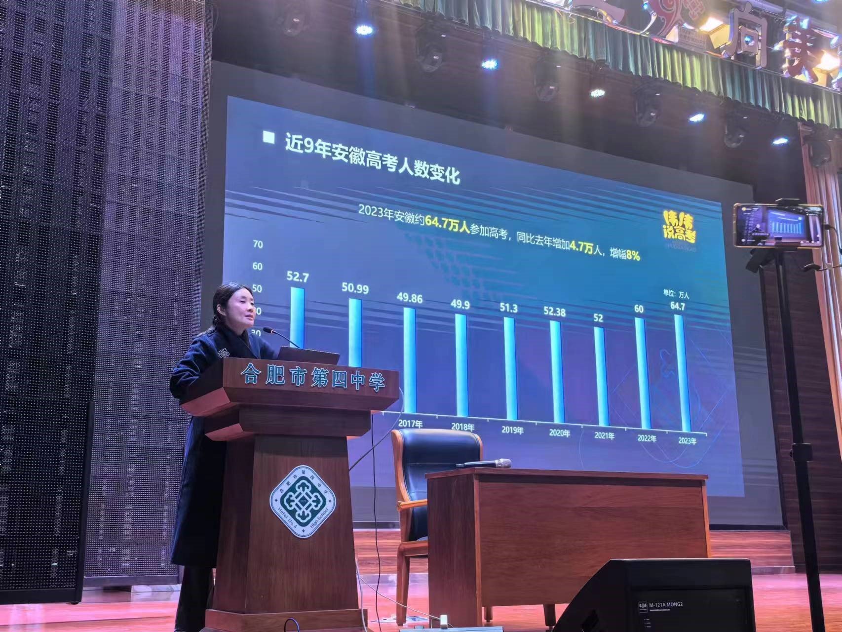 本次伟伟说高考走进合肥四中开展的升学指导讲座已经是合肥四中给高三学生和家长带来的第三场讲座。合肥四中旨在为每一位四中学生和家长提供更加全面的帮助和指导,多样化开展家校共育,为学生终身发展奠基,助力每一位同学“学好、考好、录好,发展好”!