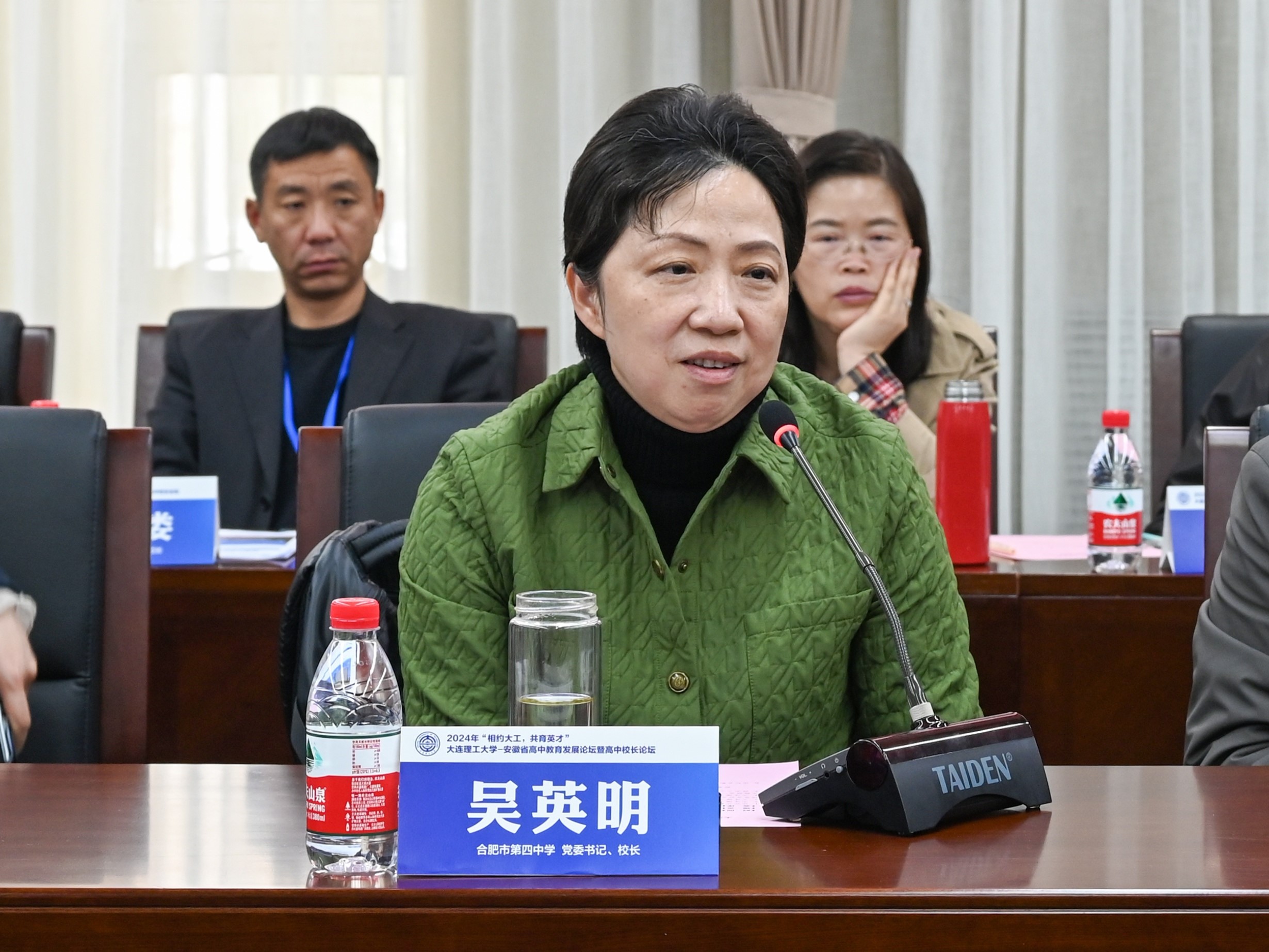 接下来,大连理工大学本科生招生办公室主任李琳围绕大连理工大学办学发展历史、人才培养模式、毕业生发展情况及2024年招生政策做了精彩报告。随后召开座谈会,吴英明书记在讲话中简要介绍了合肥四中的办学历史,并就如何促进高中和高校的交流与合作发表观点,赢得参会校代表的高度赞同。
