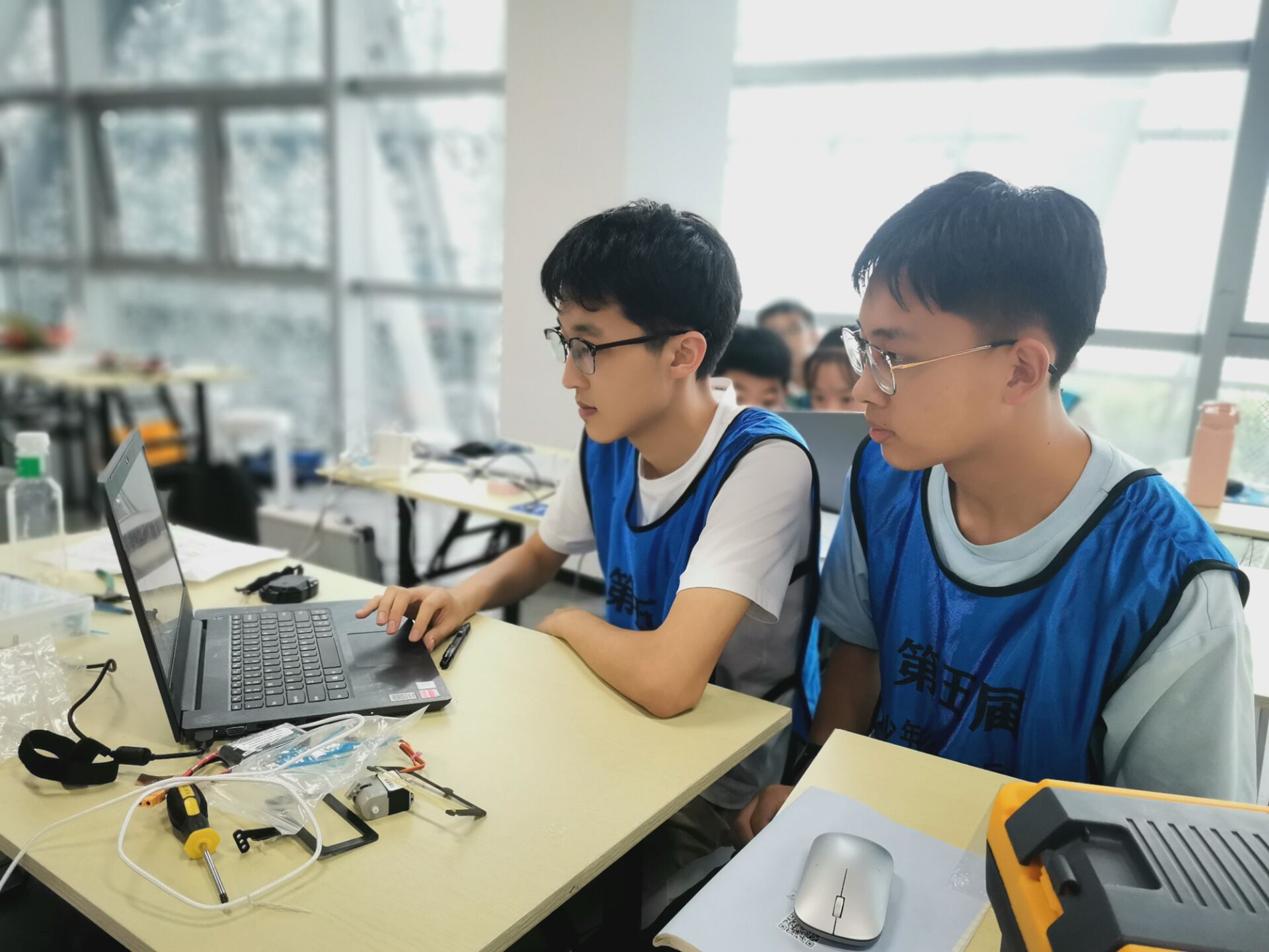 另一边,王天祺和葛周航小组虽然获得了三等奖,但他们的表现同样令人印象深刻。在比赛中,他们的机器人展现出了良好的操作性和解决问题的能力,尽管面临激烈的竞争,两位同学依然保持了冷静和专注,最终取得了优异的成绩。