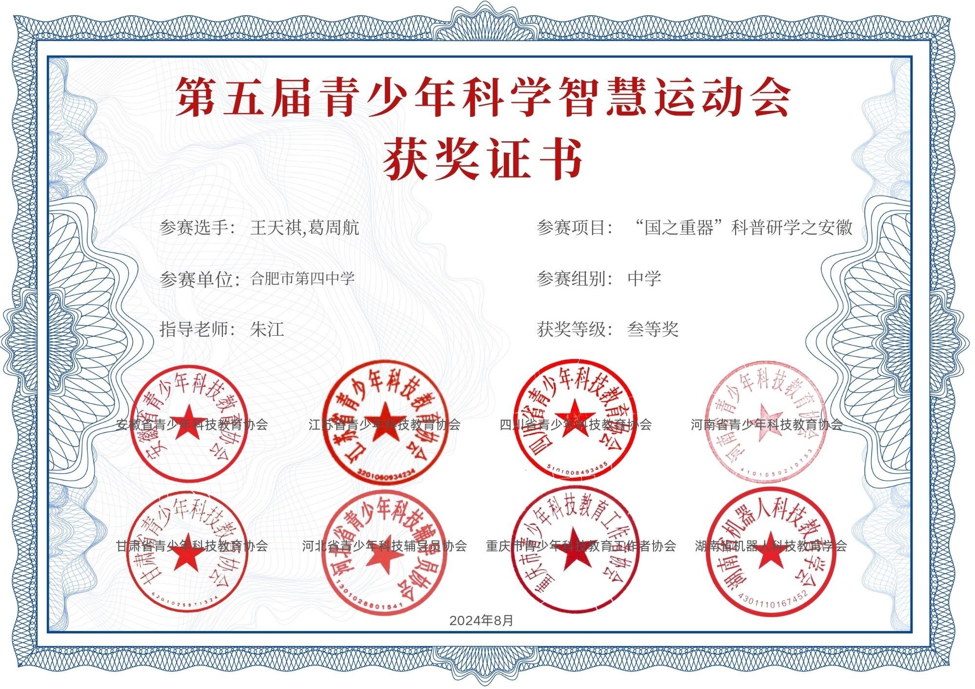 荣誉殿堂丨合肥四中机器人社团学子在第五届青少年科学智慧运动会中获得佳绩!