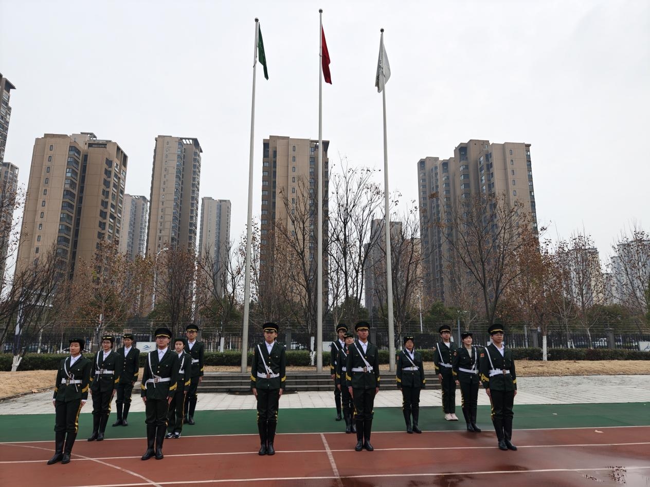 上午9时40分,仪式在肃穆的氛围中正式开始。国旗护卫队步伐铿锵,护送五星红旗庄严入场。伴随着激昂雄壮的《义勇军进行曲》,鲜艳的五星红旗迎着新年的第一缕朝阳冉冉升起,全体师生肃立行注目礼,深怀对祖国的无限热爱与崇高敬意,崭新的篇章在此刻翻开。