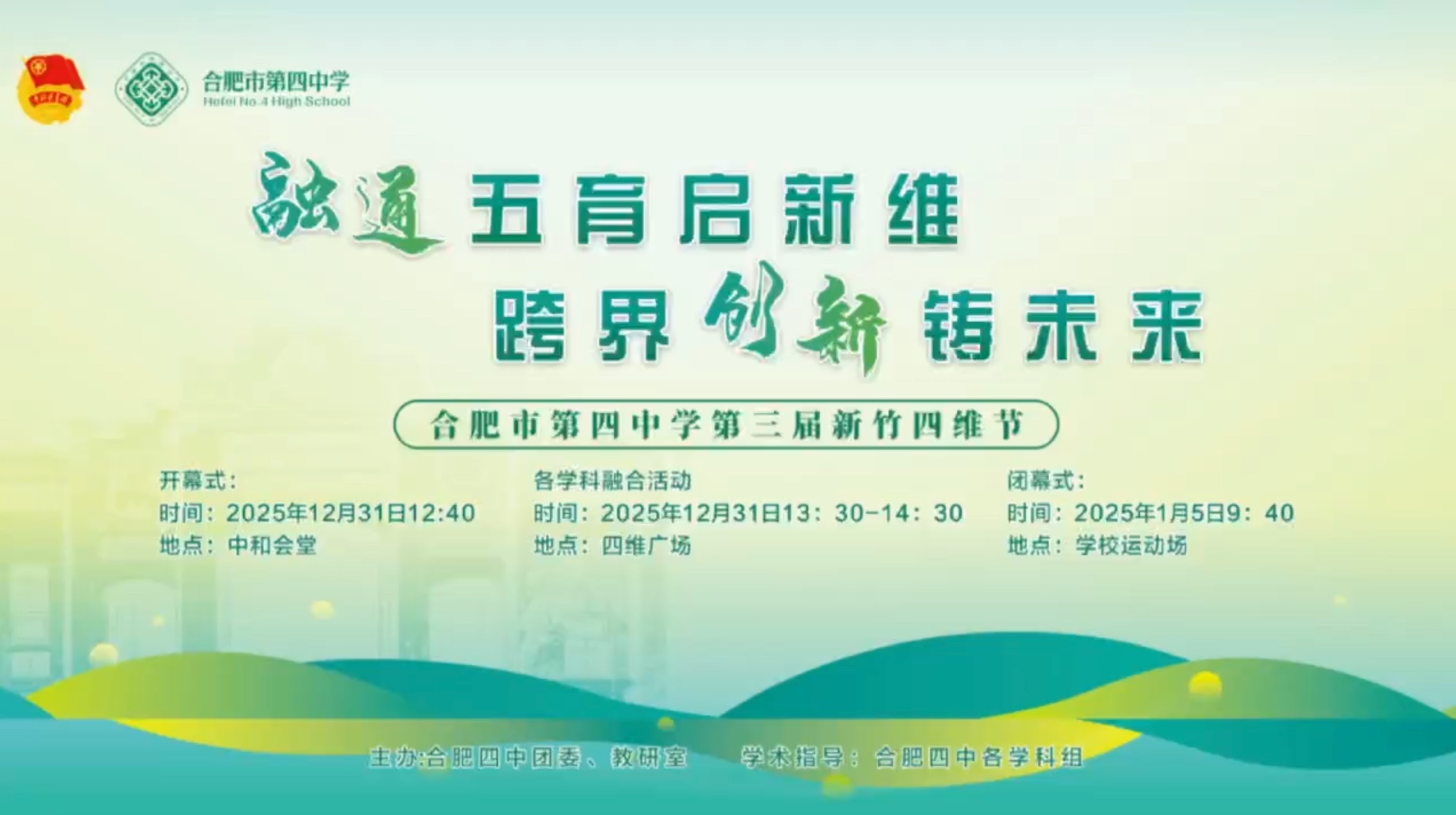 合肥四中四维节自创办以来,始终致力于构建跨学科学习平台,推动教育教学模式创新。本届活动进一步深化了“融通五育”实践,为培养具有创新精神和综合素养的时代新人提供了生动载体。四维节点燃的跨界星火,将继续在同学们心中长明。