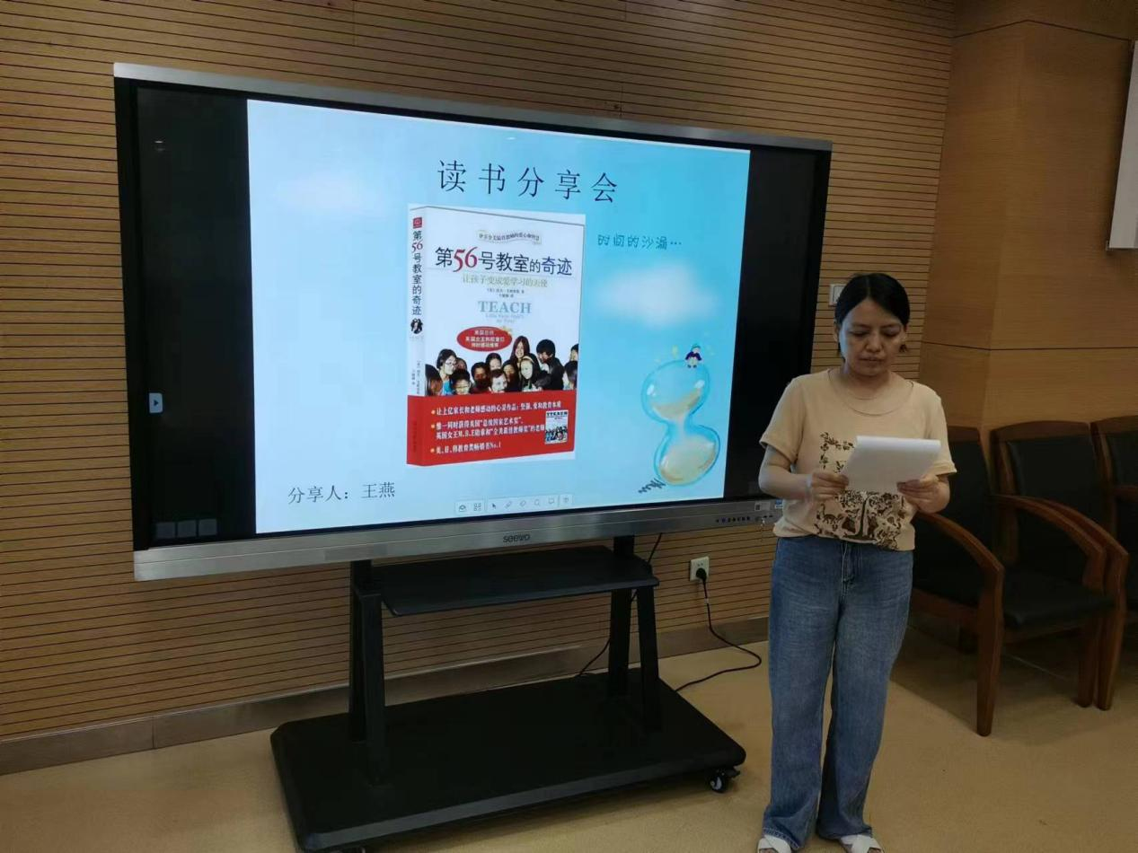 本次会议在第29个世界读书日当天召开。首先由高二年级生活老师王燕分享教育畅销书《第56号教室的奇迹》,作者雷夫·艾斯奎斯,一位从教二十五年的老师,心态平和而自信地写了许多发生在第56号教室中他和他的学生们零碎的事,这些小事儿,我们也会经常遇到,情形似乎大同小异。王燕老师说:“此书教我们做一位学生心目中的好老师,是需要付出艰辛的努力、甚至是自己所有的智慧、才能和精力的。无论自己在教育领域任何岗位上,都要有对孩子深深的爱和对事业高度负责的精神;作者也是用自己的实际行动证明了教育的关键在于不断地实践、反思、实践,因为“要达到真正的卓越是要做出牺牲的,需要从错误中汲取教训的同时付出巨大的努力。”要用对方法,就如书中所说的:身为教师的我们将有所成长,而在所打造的环境里,孩子们也将茁壮成长。