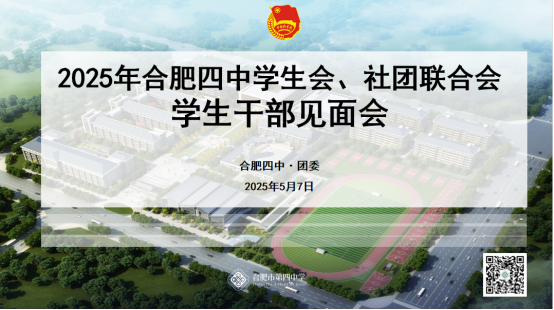 为加强学生自我管理能力,推动校园文化建设,合肥市第四中学团委于2025年5月7日隆重举行校学生会和社团联合会学生干部见面会,会议由学生会办公室李奕彤主持,团委书记袁芳、助理祁礼杨、团委老师刘慧、崔雪倩、李玉英、廖祥蕾莅临现场指导,23级和24级学生干部共同参与,现场气氛热烈而充满期待。