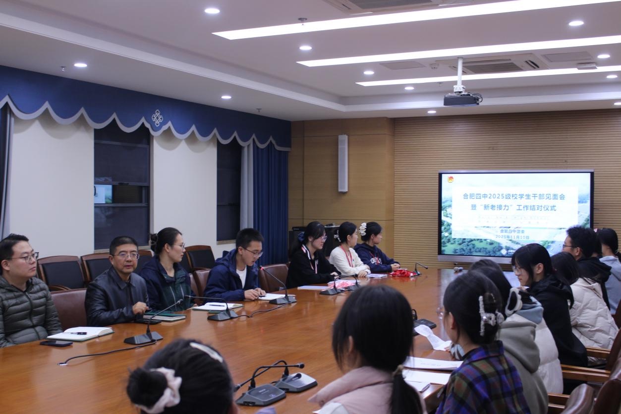 秋光潋滟,薪火相传。2025年11月10日,合肥四中校学生会、社团联合会2025级学生干部见面会暨“新老接力”工作结对仪式在学校景贤书院会议室隆重举行。