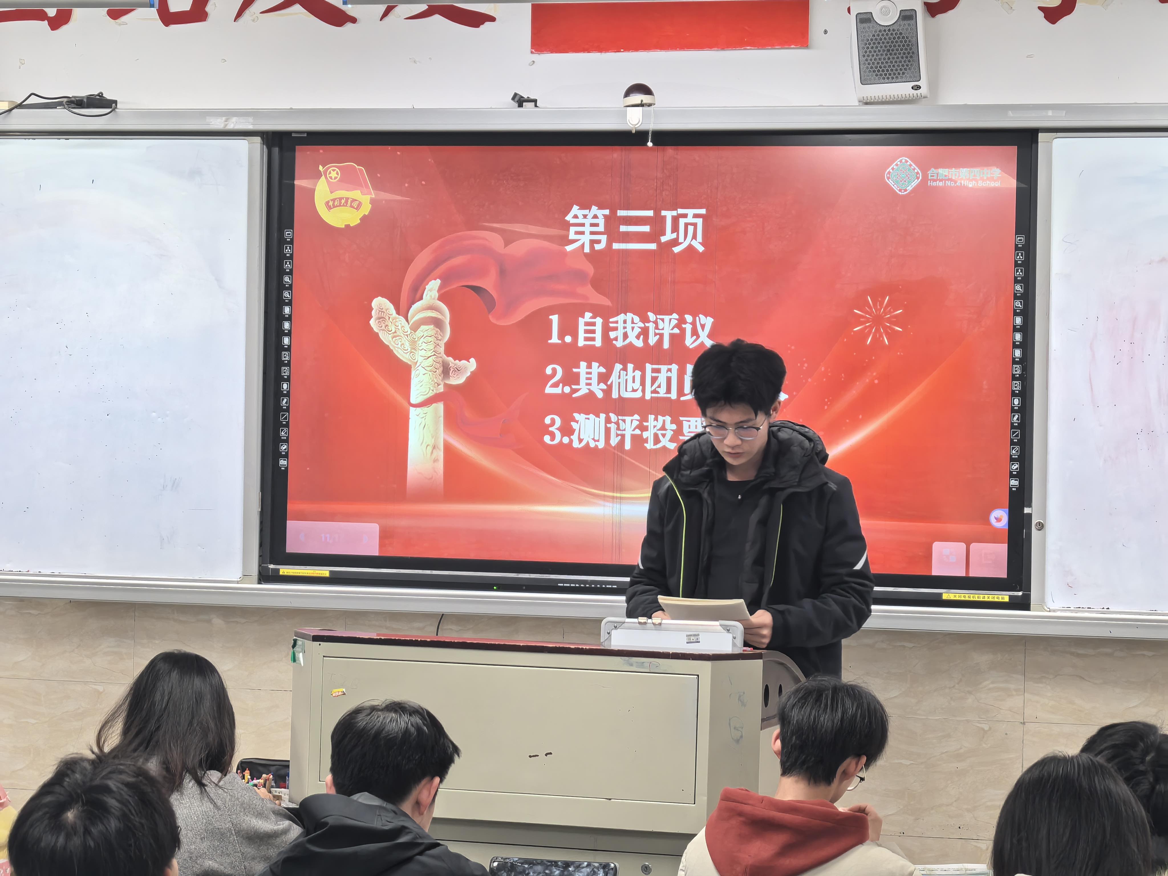 各团支部严格按照校团委通知要求,在团支部书记的主持下,有序推进会议各项议程。会议地点设在各班教室,大屏幕上统一展示团旗及“组织生活会”字样会标,营造了庄重严肃的会议氛围。各支部辅导员(班主任)全程到会指导并作点评,确保会议不走过场、取得实效。