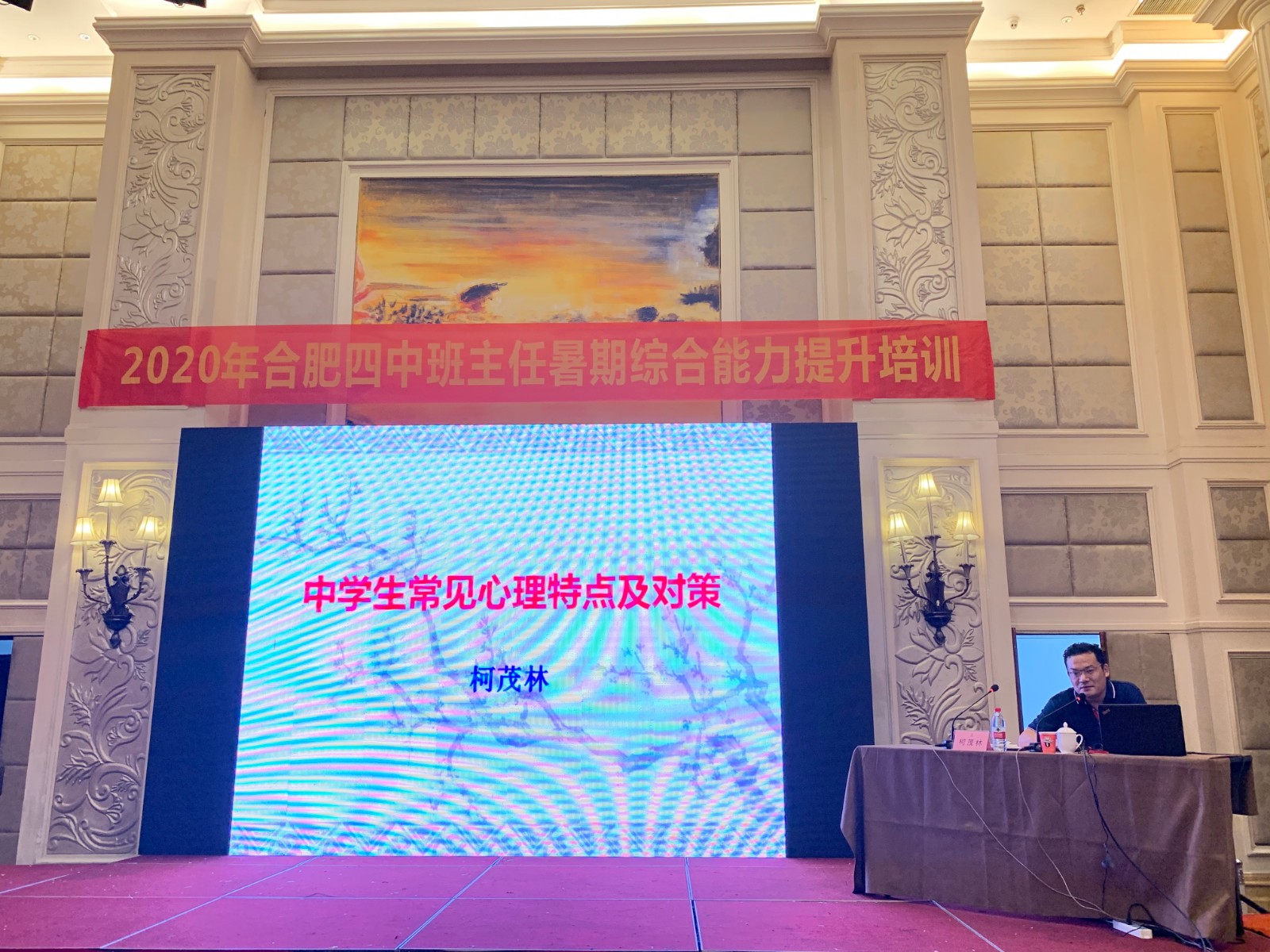 8月16日下午14:30,培训精彩继续。武警安徽总队医院心理咨询室主任、安徽省心理咨询学会常务理事、安徽省心理卫生协会理事柯茂林莅临现场,开展《中学生心理分析与应对》讲座,重点分析中学生心理特点,讲述学生可能存在的心理问题,帮助在场教师答疑解惑。柯主任幽默风趣,旁征博引,妙语连珠,活灵活现,会场笑声不断,掌声阵阵。