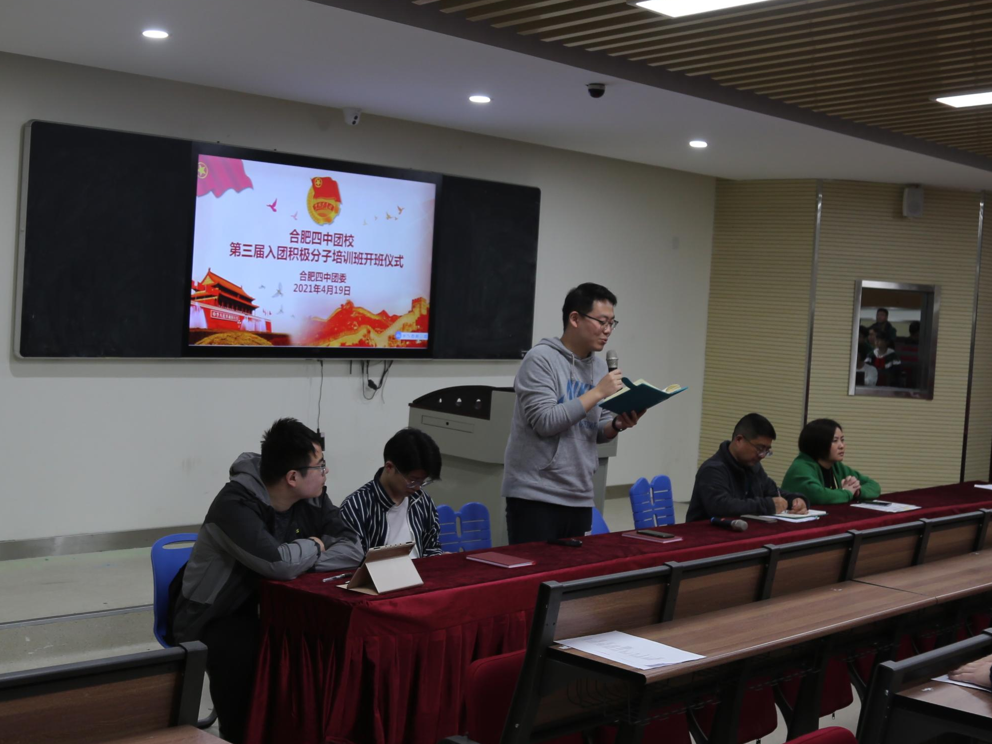 为了加强对合肥四中入团积极分子的培养和教育,深入践行“明德弘毅,行圆智方”的四中校训,增强团组织的凝聚力和战斗力,保证团员发展工作的质量,发挥校团委阵地育人的优势,合肥四中团校第三届入团积极分子培训班于2021年4月19日星期一下午在四象楼二楼合班教室顺利举行。合肥四中副校长赵勇、合肥四中高一年级部副主任何飞、校团委祁礼杨、刘慧、牛敬超老师及青年教职工团支部教师代表出席了开班仪式。