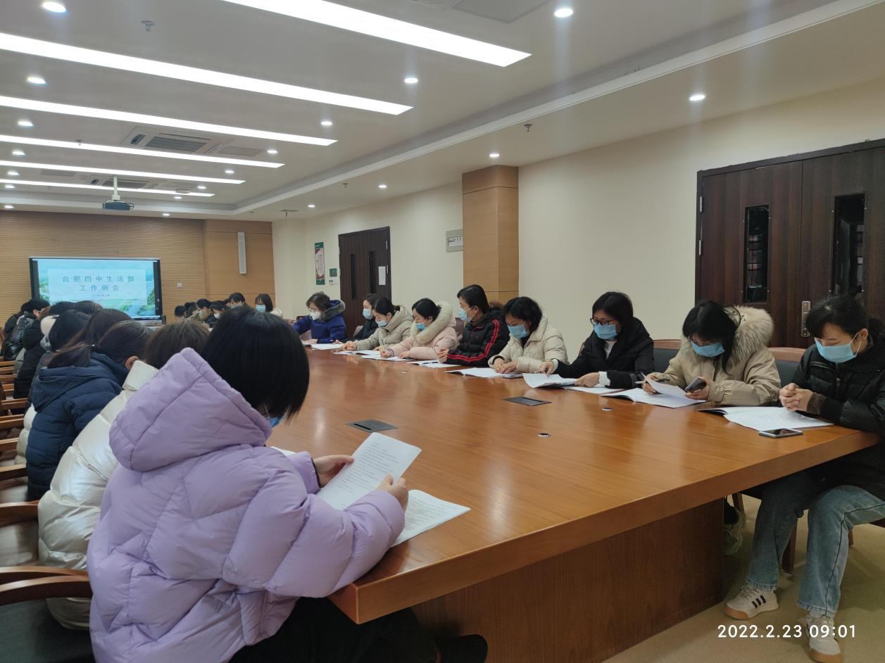 为提升合肥四中学子在生活区的住宿体验,加大寝室管理力度,营造安全、文明、和谐、温馨的住宿环境,2022年2月23日上午9:00,合肥四中生活部例会准时召开,会议在生活部主管陆怡老师的主持下有序开展。