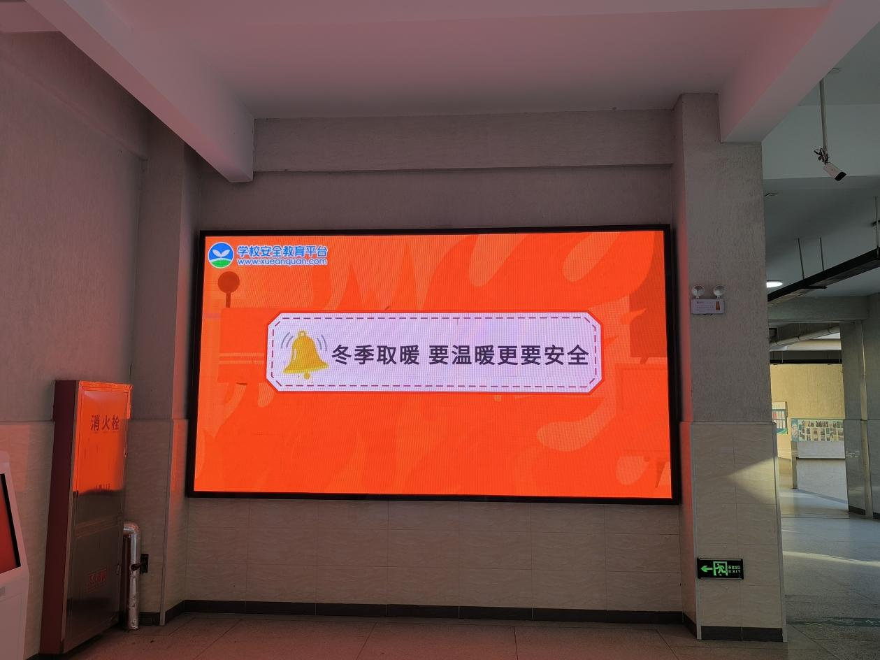 11月6日,学校通过教学区、宿舍区电子大屏和电子班牌,推出消防安全知识专题宣传片,重点宣传冬季防火、一氧化碳中毒、居家防火安全等内容,吸引师生驻足观看学习。