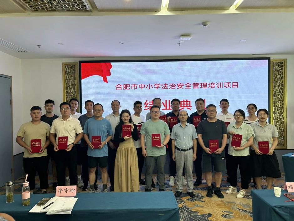 为进一步加强学校法治安全管理工作队伍建设,不断提高安全防范意识和组织协调安全工作的能力,全面提升学校法治安全管理水平,七月下旬至八月上旬,合肥市教育局分两期开展了2024年全市中小学法治安全管理培训,8月3日至7日,分管校长彭强、保卫科负责人李一凡参加了第二期培训,双双获得“优秀学员”称号。