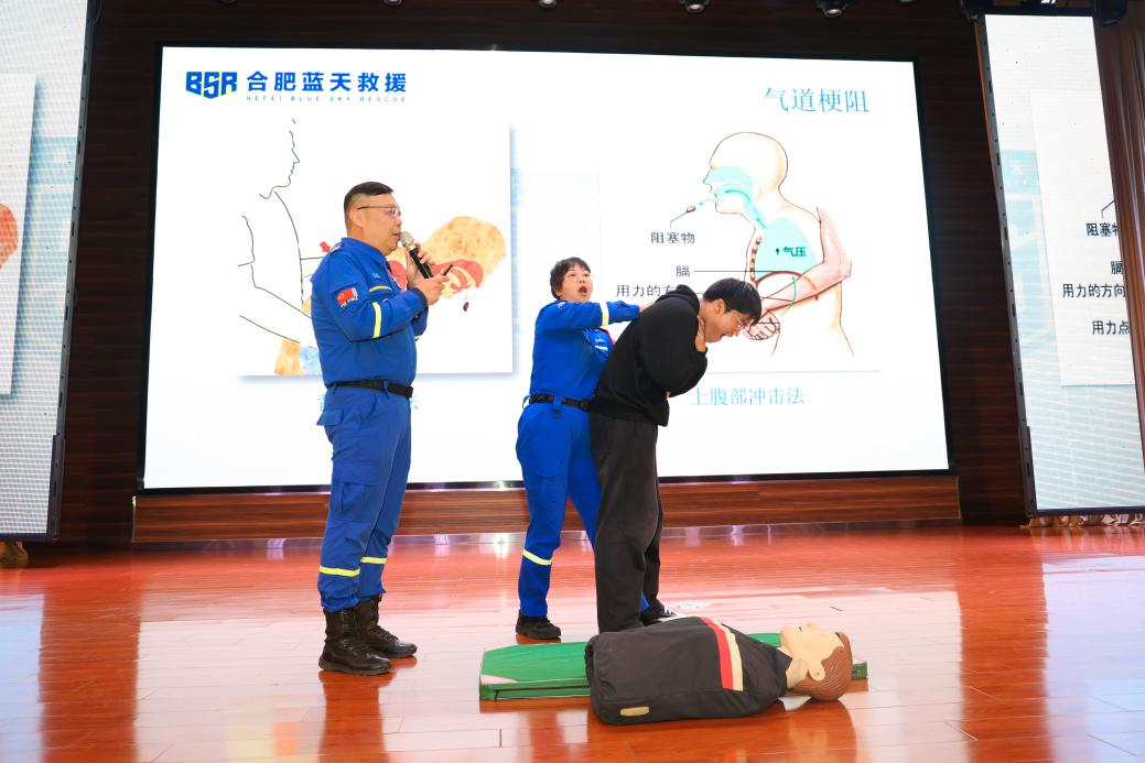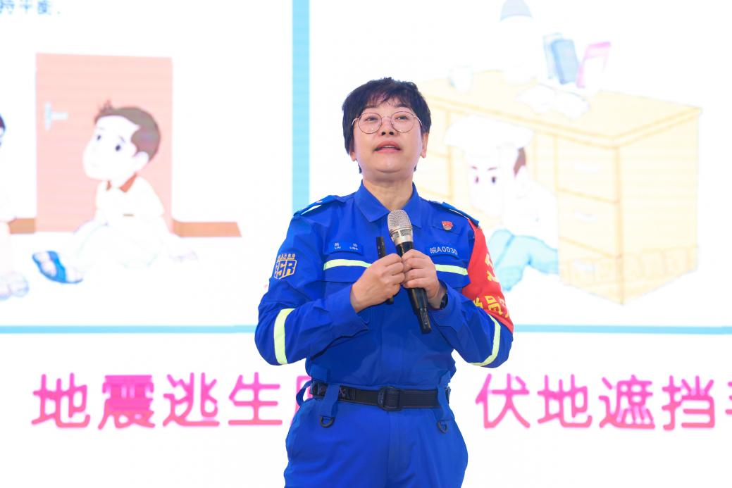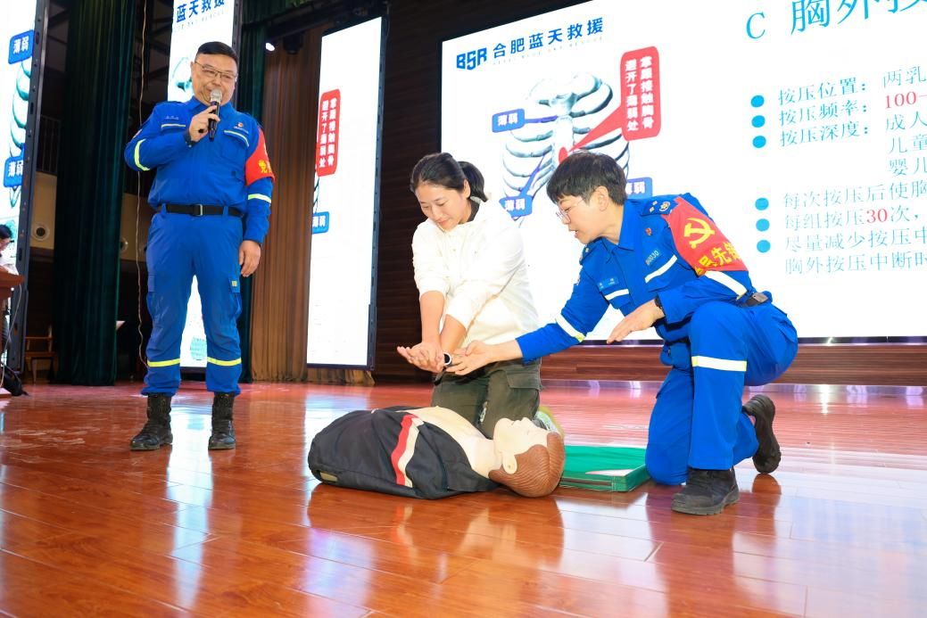 随后,合肥市蓝天救援队讲师刘玲为在场的师生们进行了细致专业的安全知识讲解,内容涵盖了防溺水、防震减灾以及防踩踏等。她通过真实的案例和专业的分析,深入阐述了预防溺水、踩踏事件和地震的重要性,并详细传授了在这些安全事故发生时应采取的有效应对措施。