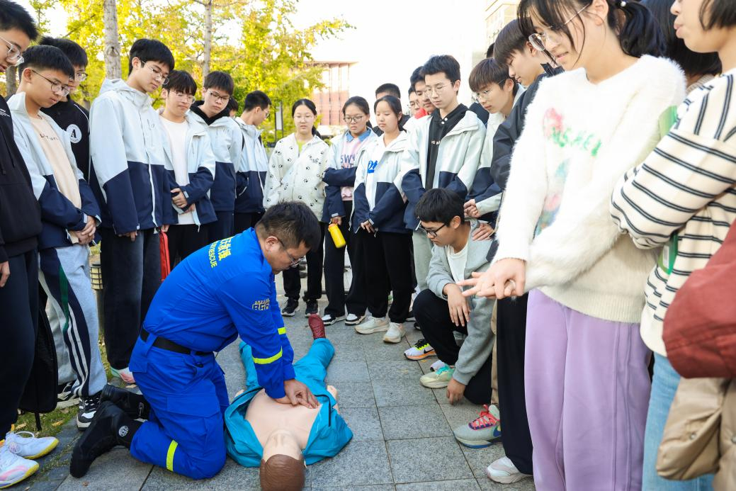11月6日下午,合肥市蓝天救援队应邀来校,在中和会堂、景贤广场成功举办了一场“沉浸式”的安全教育宣讲活动。校长毛晓斌、副校长李昌年、彭强、赵勇和高一年级全体师生、体育教师、生活教师共同参加。毛晓斌作开场致辞,他强调了安全教育的重要性,指出在当前的社会环境中,师生们掌握必要的自救、互救技能和安全防范知识至关重要。