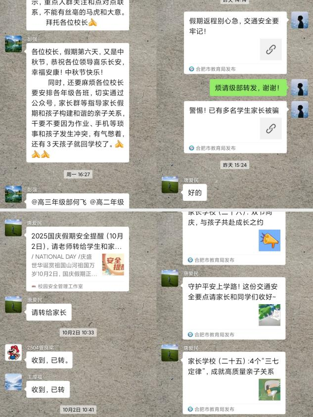 以行动筑牢防线 , 用责任守护平安——合肥四中开展双节安全护航行动