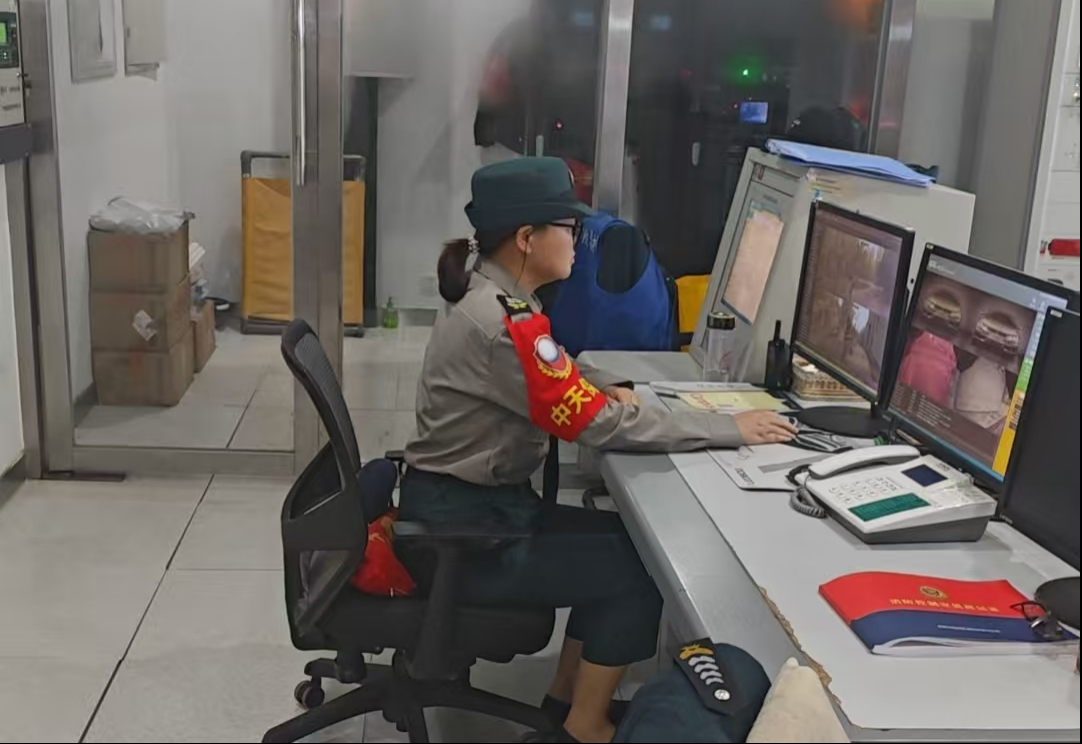 假日期间,校园实行封闭管理,校门外拒马和石球整齐布设。值班干部按时到岗,落实巡查责任。保安人员24小时在岗值守,严格执行出入登记与巡查制度及假期体育场地对外开放制度,切实守好校园安全的第一道“关口”。同时,学校加强对消防设施、电梯设备的维保与定时点检,确保设备完好、随时可用。人防、物防和技防措施的到位,切实筑起一道可靠的安全屏障。