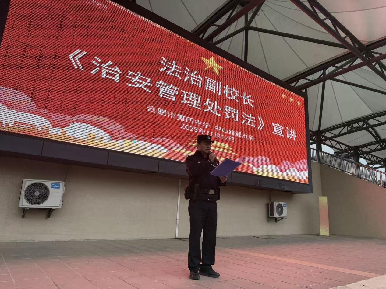 晨光正好,国旗飘扬。近日,在合肥四中的升旗仪式上,一场别开生面的法治教育课在操场展开。学校法治副校长围绕《治安管理处罚法》,与全校师生分享了那些看似遥远、实则贴近生活的法律知识。