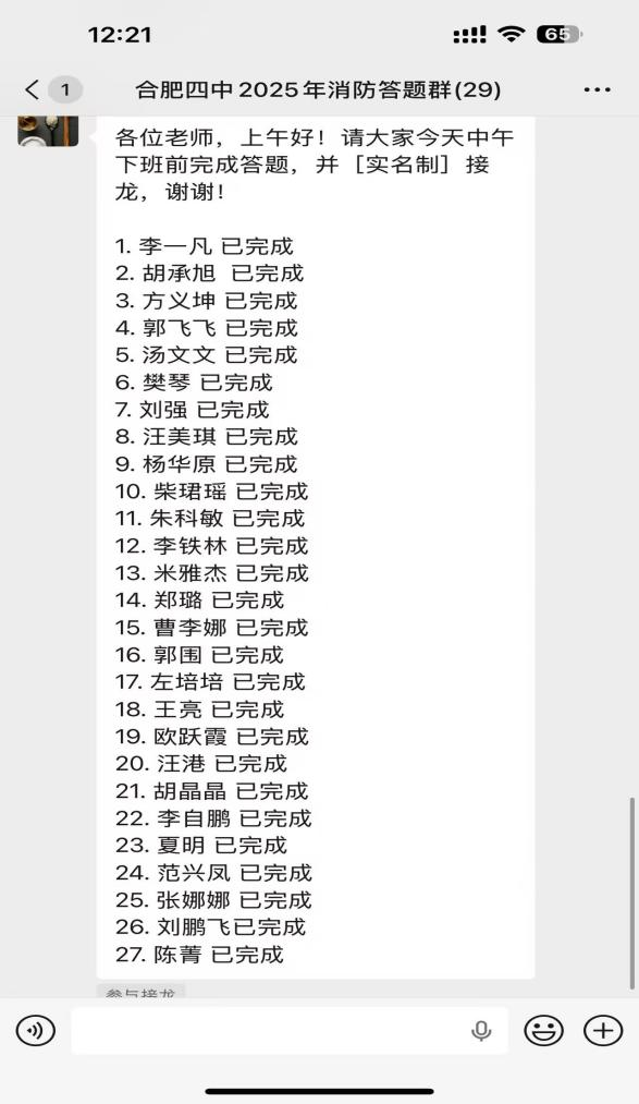 12月2日,合肥四中针对新入职教师、新班主任及新生活老师这一关键群体,专门组织了一场消防知识线上专题问答活动。本次活动作为前期培训的深化与巩固,通过精心设计的线上问卷,系统检验并提升了新教职工对消防安全理论、应急流程及器材使用的掌握程度。老师们积极参与,有效夯实了校园“人防”基础,形成了“理论培训+实践巩固”的闭环,切实增强了团队的应急协同能力与安全意识。