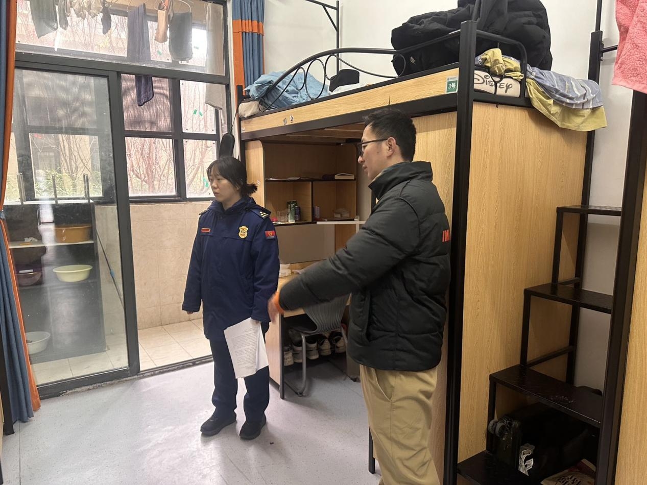 第二阶段,转入教工宿舍,校领导带队,重点排查使用高功率电器、明火炊具、私接乱拉电线等安全隐患。检查组进行了地毯式排查,对教工宿舍适用的电器进行了逐一登记,对其中存在风险隐患的情况对号提醒到人。排查发现大部分教职工展现了高度的安全意识和良好的生活素养,室内用电规范,整洁卫生。