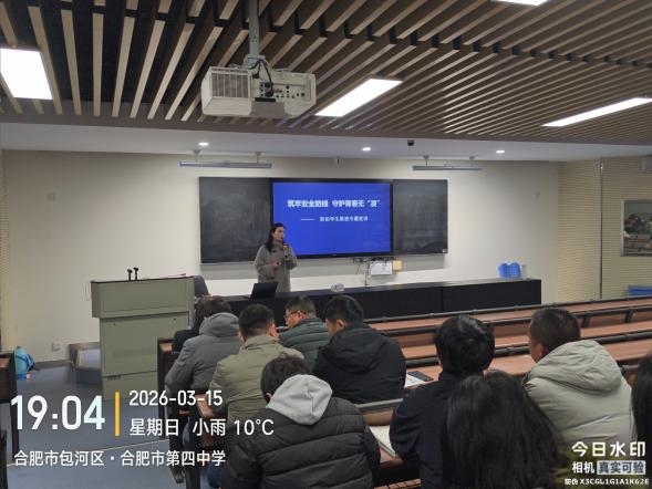 为深入贯彻落实《健全完善 “985” 工作体系促进中小学生健康成长的实施方案》精神,进一步压实校园安全管理责任,全面提升班主任在学生欺凌识别预警、规范处置及源头预防等方面的专业能力,3 月 15 日晚,合肥四中保卫科牵头组织班主任预防学生欺凌专题培训,全体班主任参加。本次培训系合肥市教育局2026年学生欺凌防治专题培训“送教到校”系列活动的重要环节,特邀国家企业培训师、市电视台栏目制片、市安全宣讲团讲师陈碧瑶主讲,旨在进一步筑牢、夯实了校园安全防线,培训由保卫科李一凡主持。