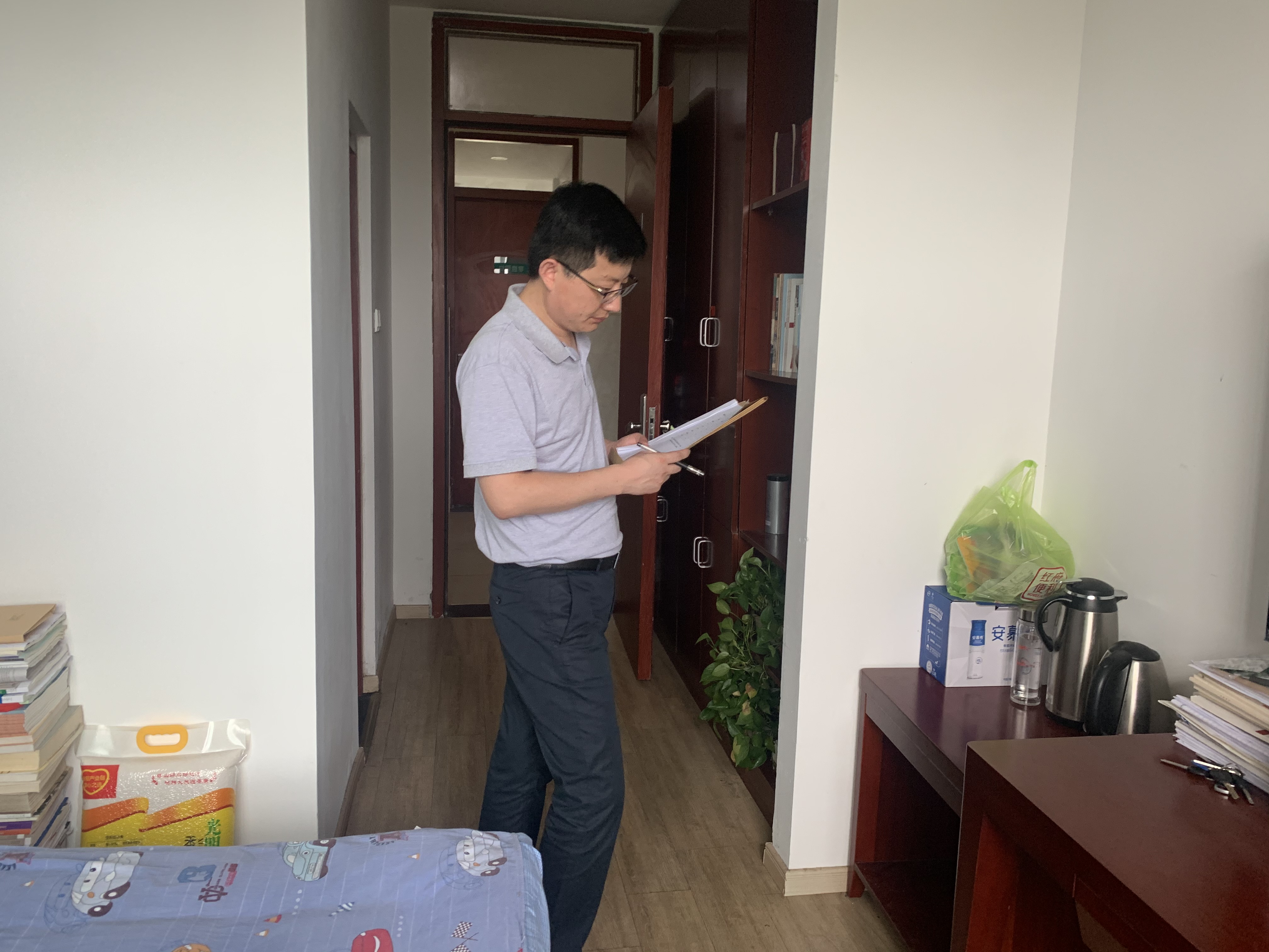 为加强“平安学校”建设,进一步规范教师公寓、学生宿舍安全管理,7月7日,合肥四中保卫科、总务处、学生处等部门联合对教师公寓和学生宿舍进行了安全隐患检查。