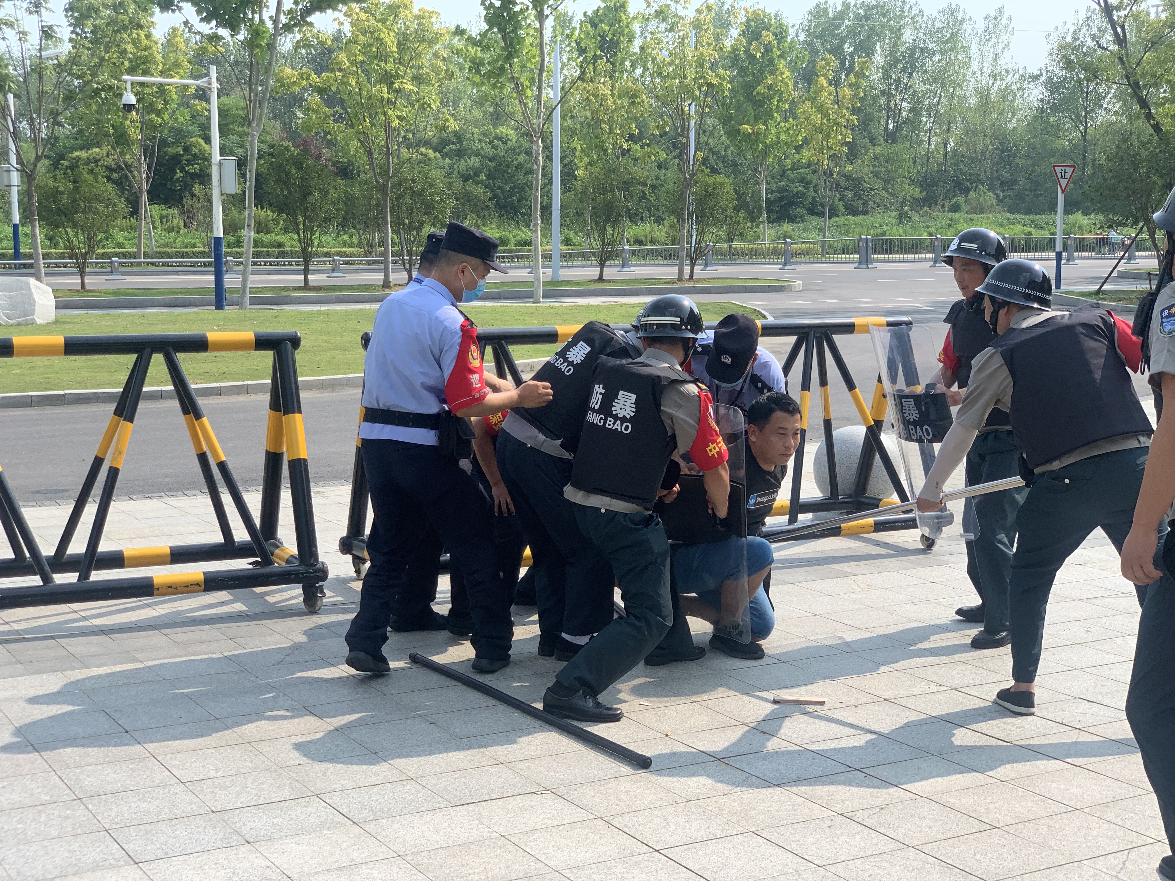 在反恐演练中,演练了“暴恐分子”冲击校园,保安发现并制服,公安迅速处警,最终成功处置一起突发事件的过程,各岗位分工合作、配合默契,达到了预期效果。