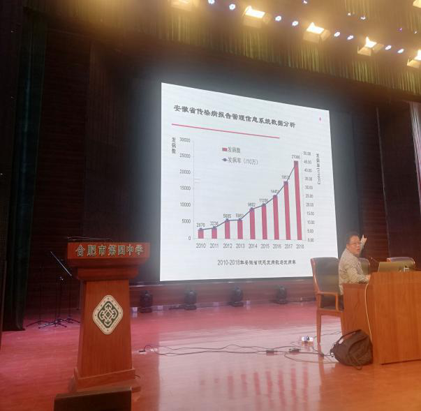 10月21日,省疾控中心专家、省卫计委突发公共卫生事件处置专家委员会委员、应急办主任、安徽医科大学硕士研究生导师吴家兵先生应邀为合肥四中高一年级学生做了一场疾控预防知识讲座。本次讲座也是合肥四中党支部“不忘初心,牢记使命”主题教育为师生办实事的一项重要举措。