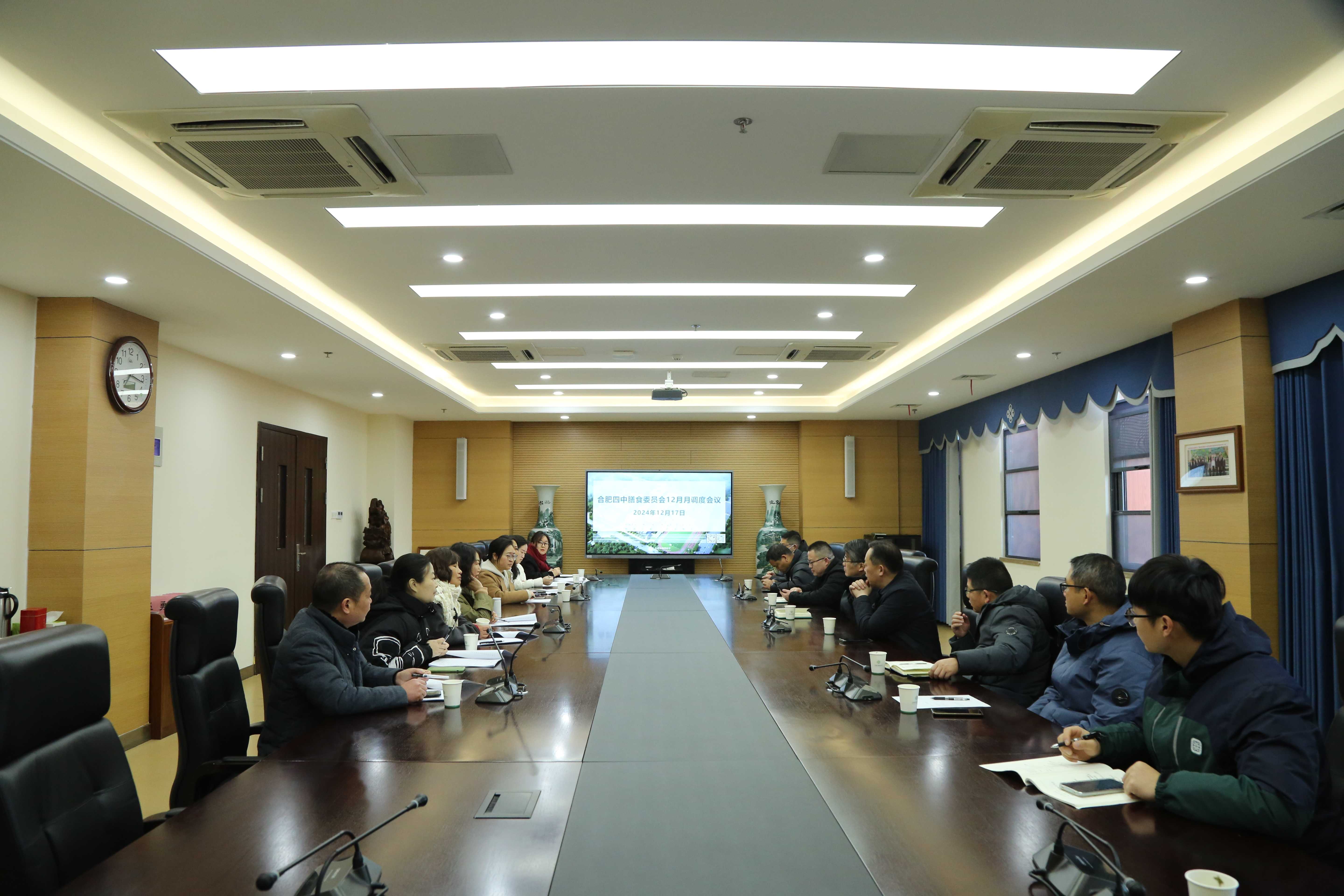 12月17日,合肥四中以“食材验收”为主要议题,召开了膳食委员会月度例会,党委书记熊荣领,党委委员、校长毛晓斌,党委委员、副校长彭强,总务处、各年级部、财务科等负责人和工作人员级家委会膳食委员会成员等参会,会议由彭强主持。