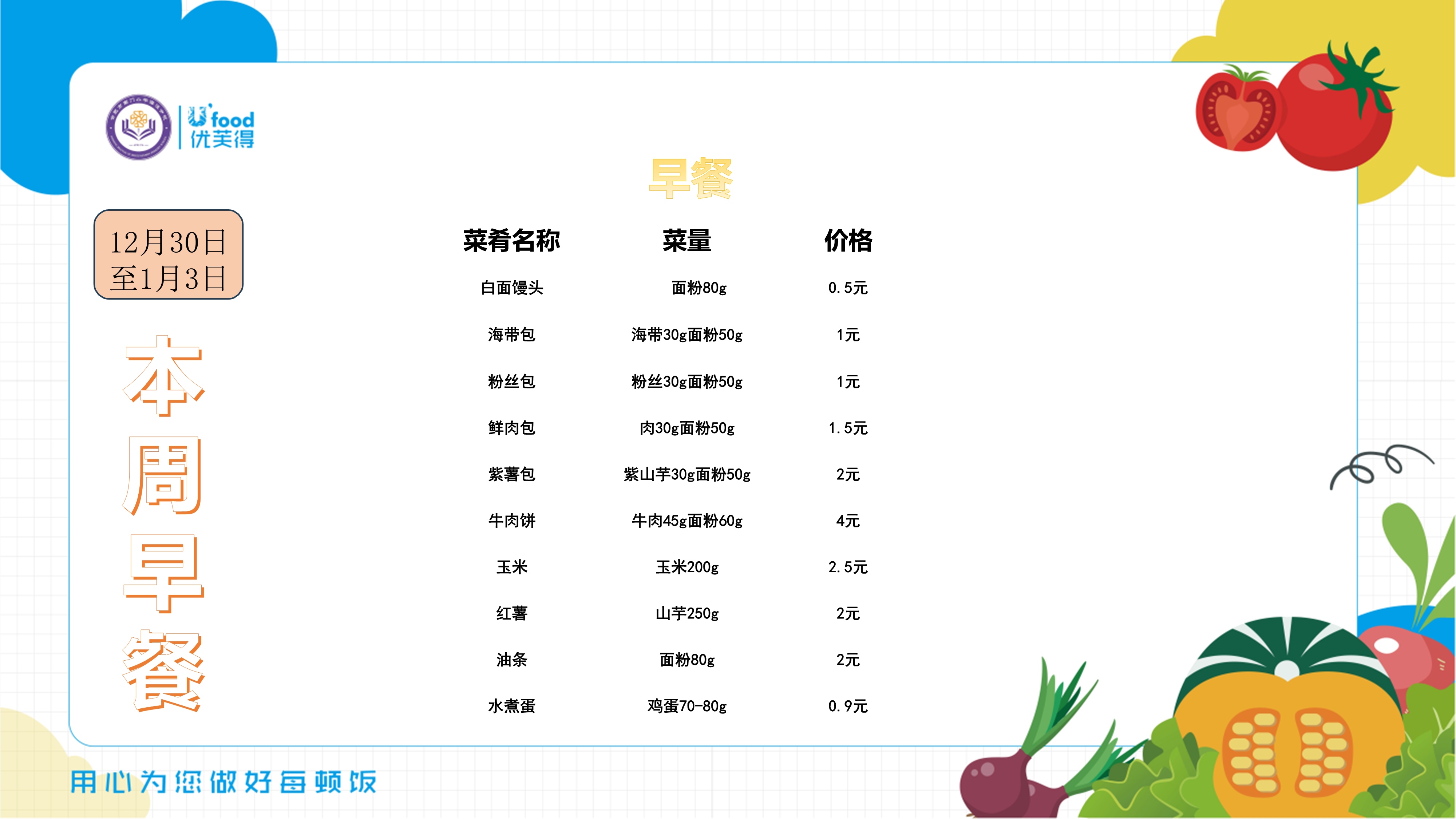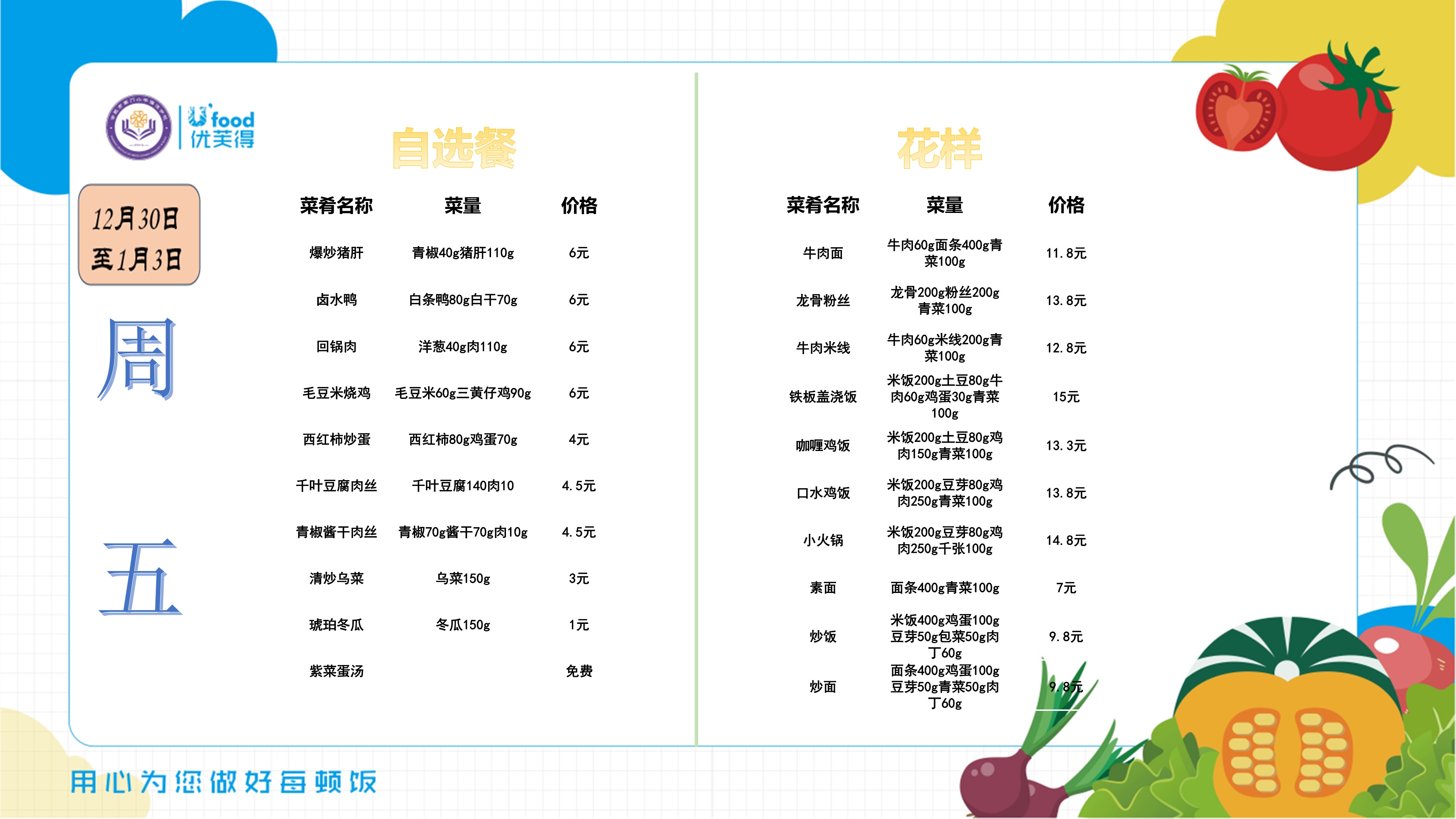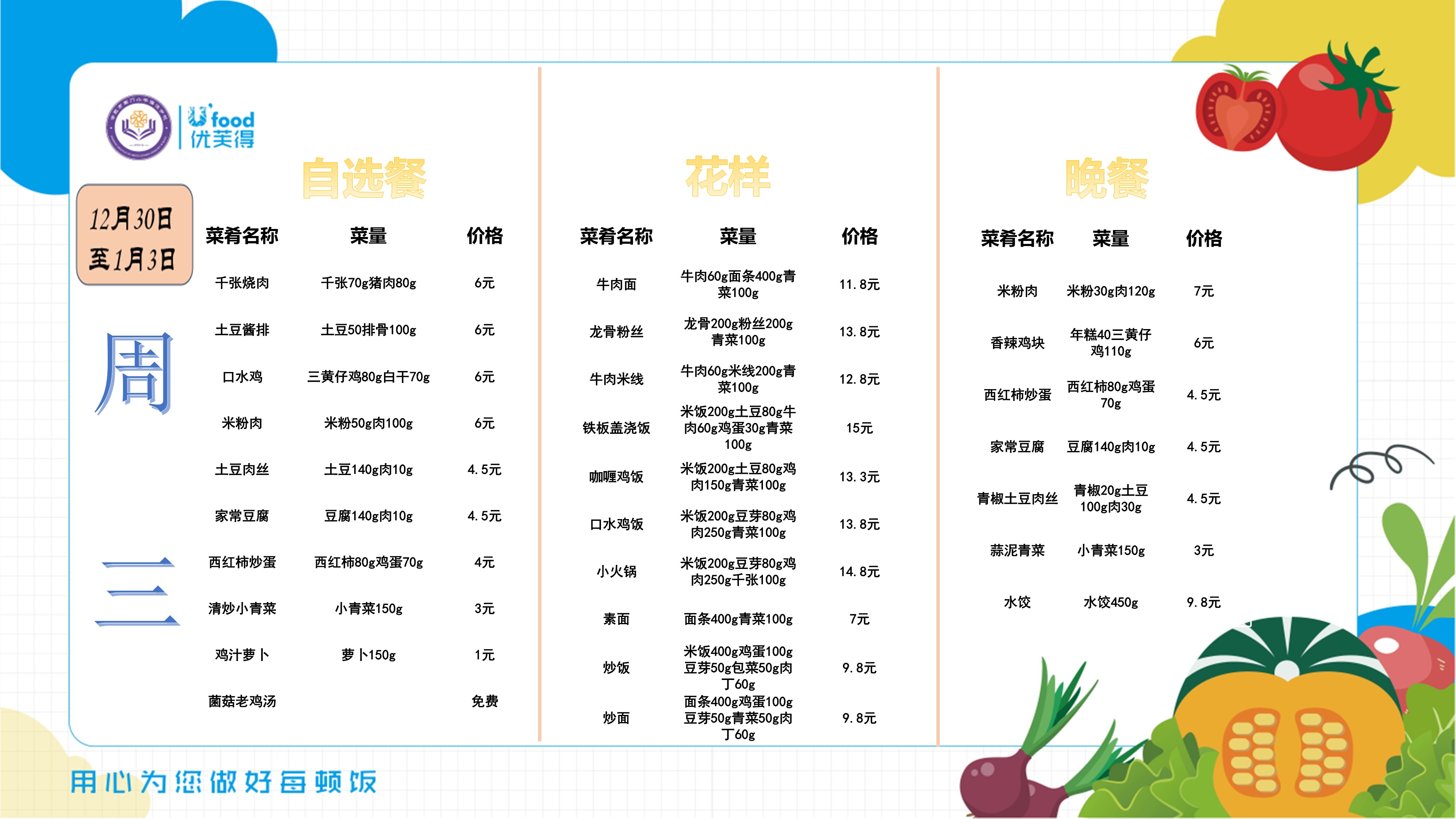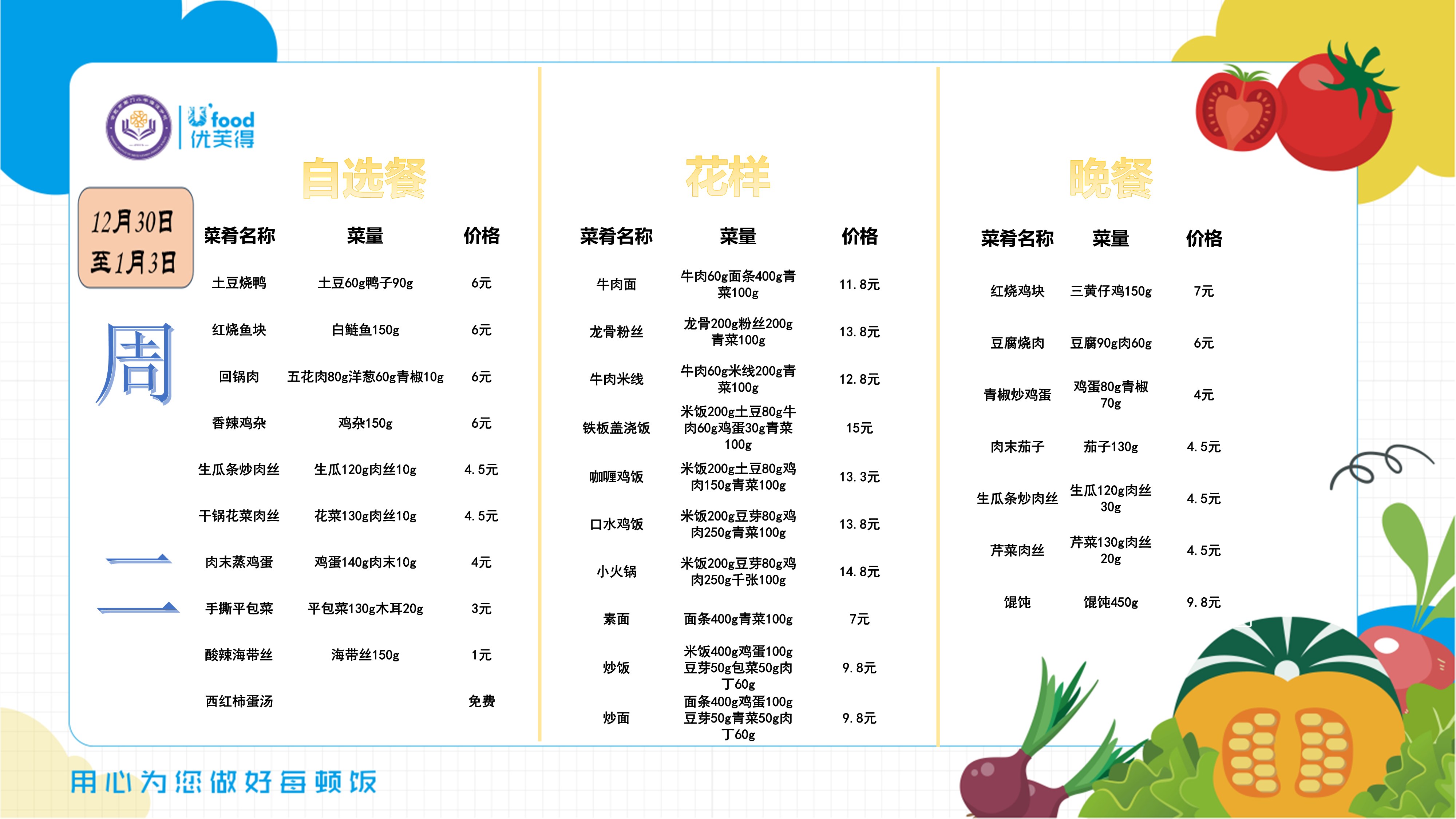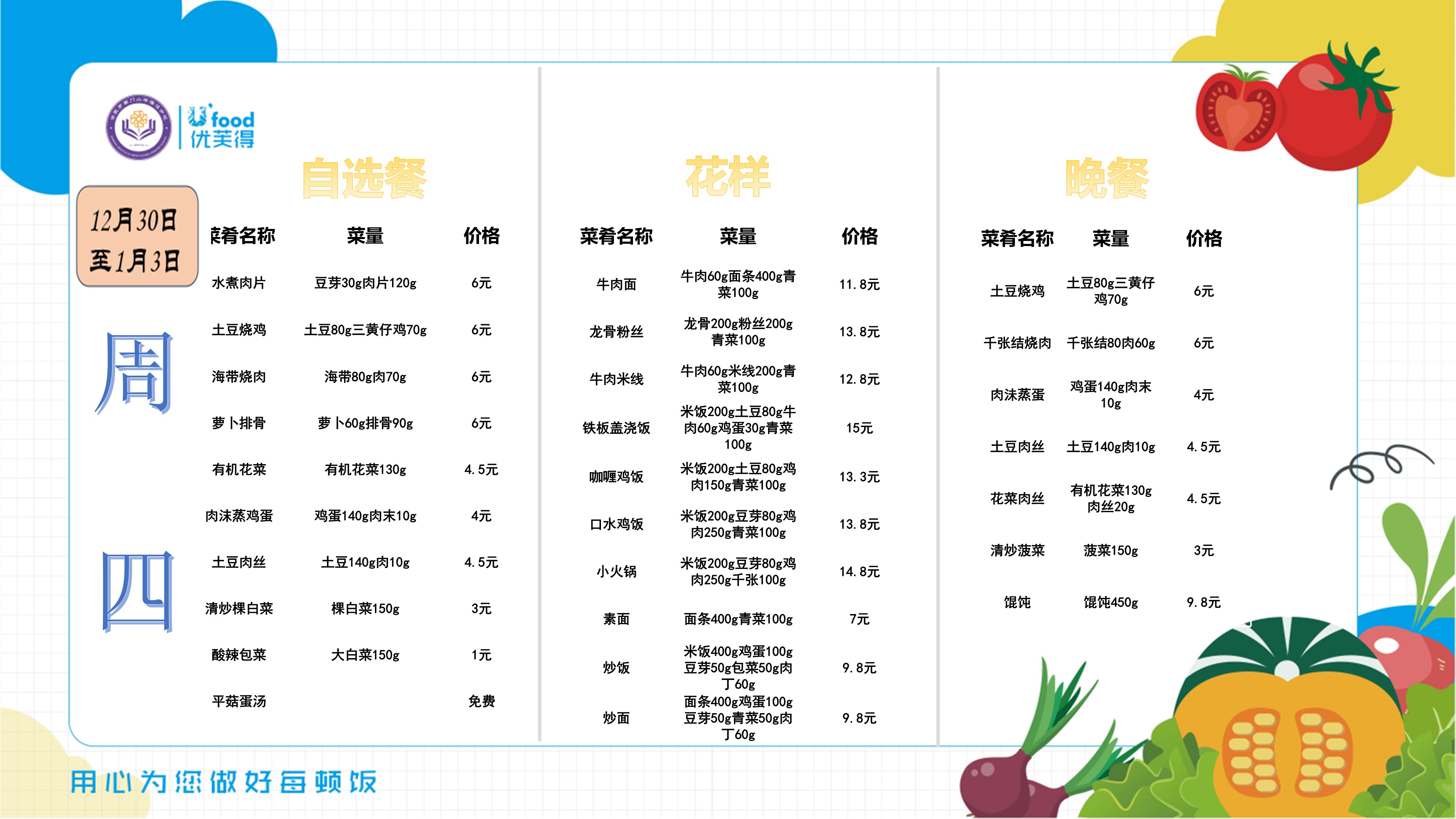 合肥四中四季堂12月第五周带量带价食谱
