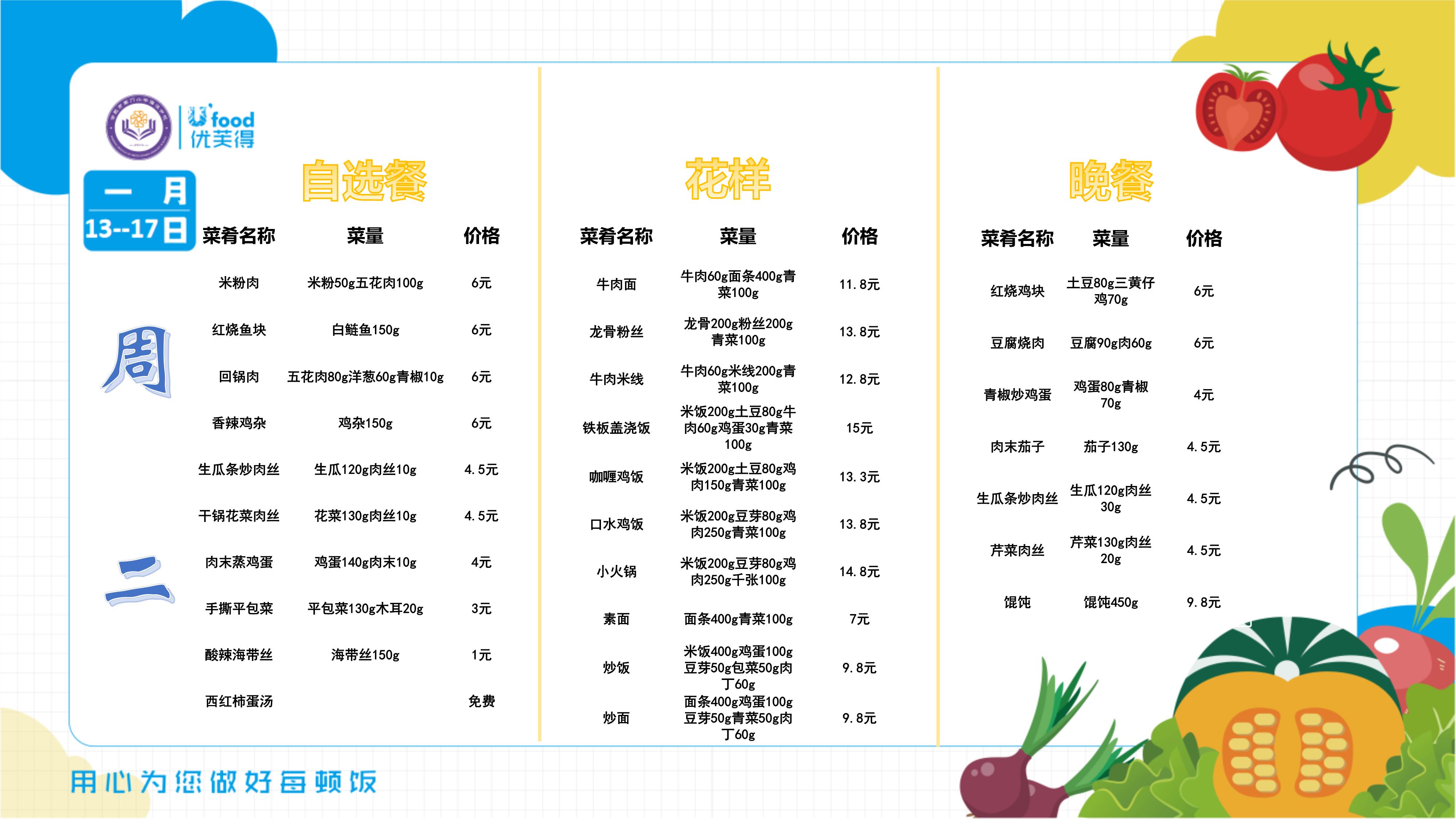 合肥四中四季堂2025年一月第三周带量带价食谱