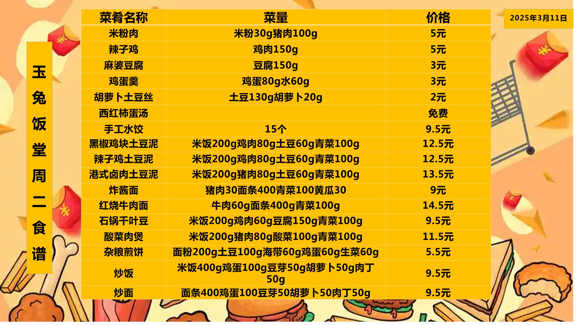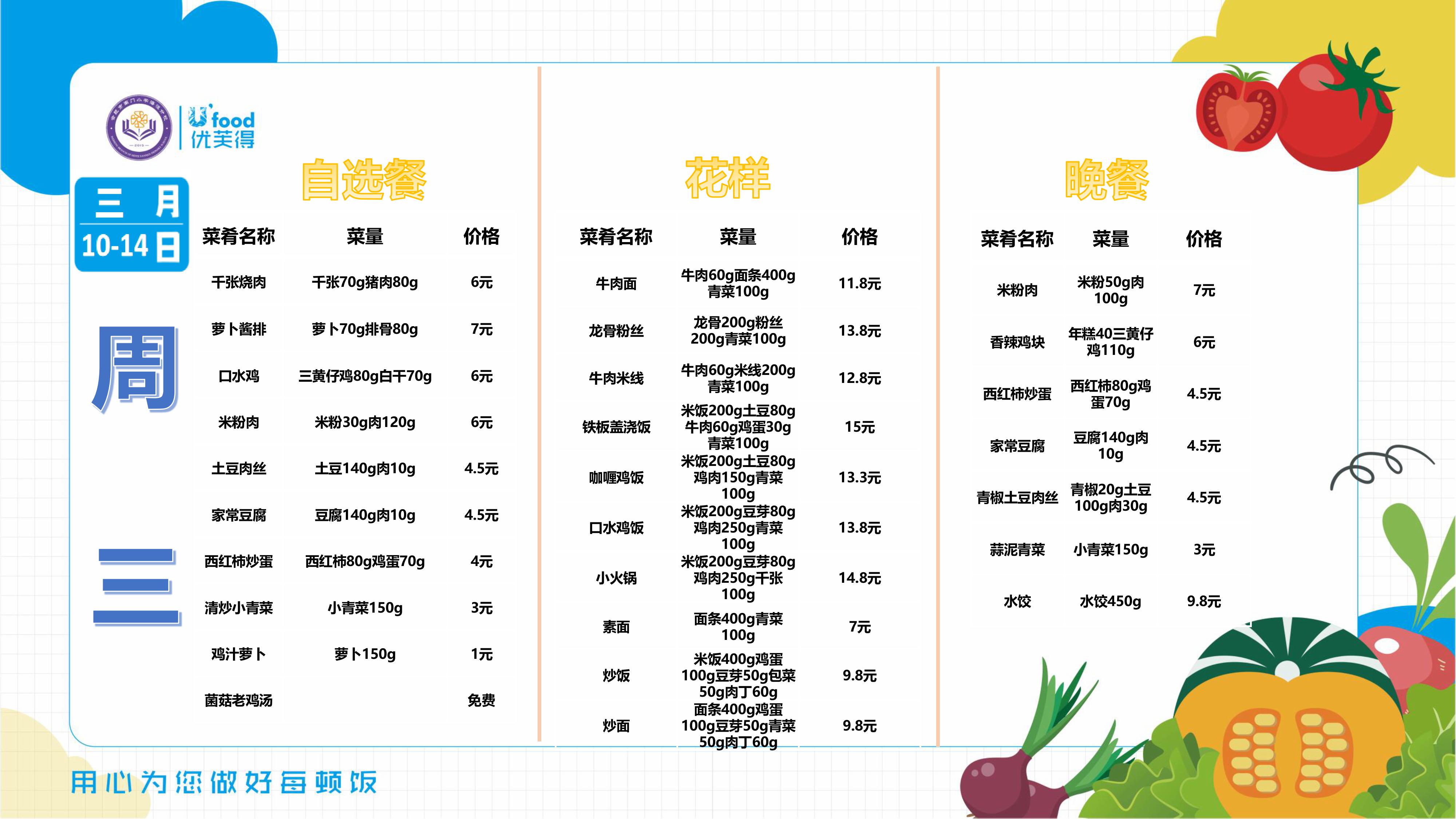 合肥四中四季堂2025年3月10日——3月14日一周食谱