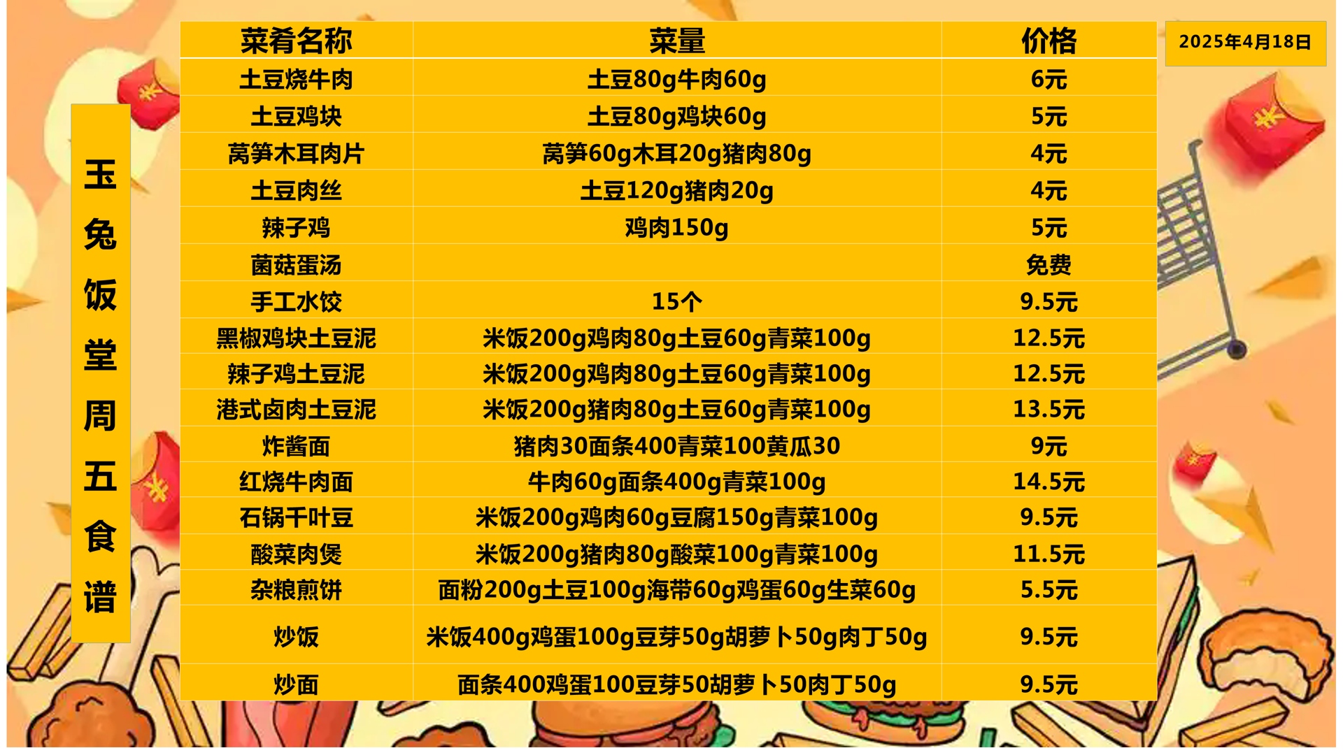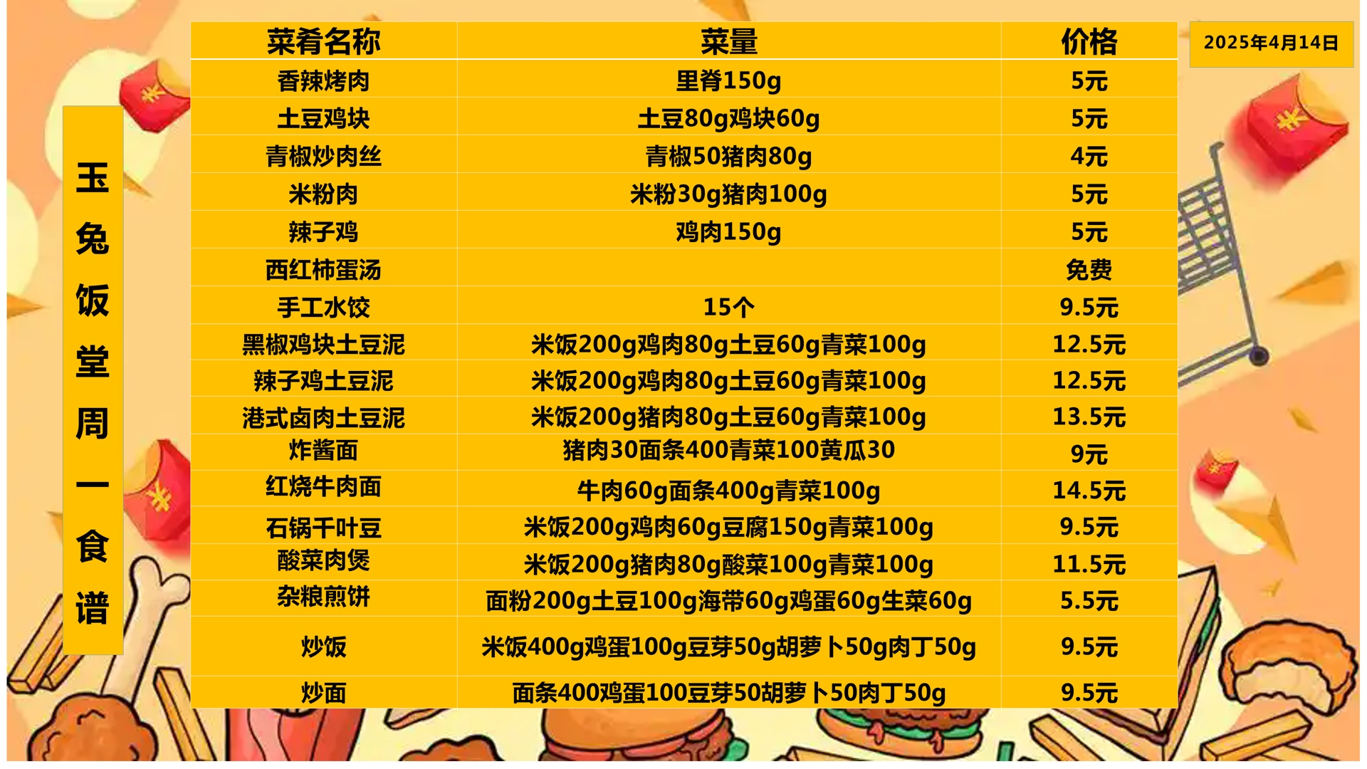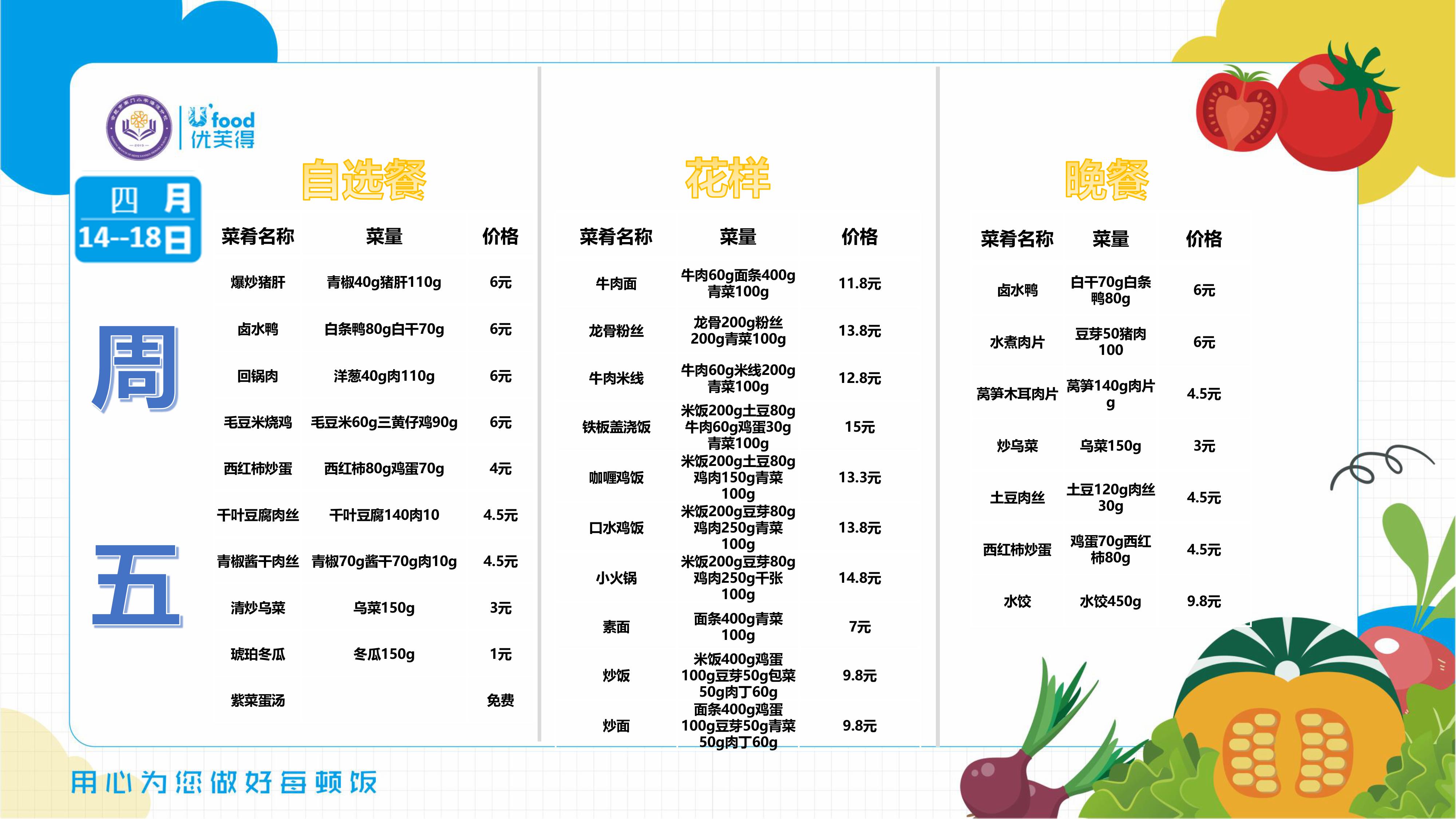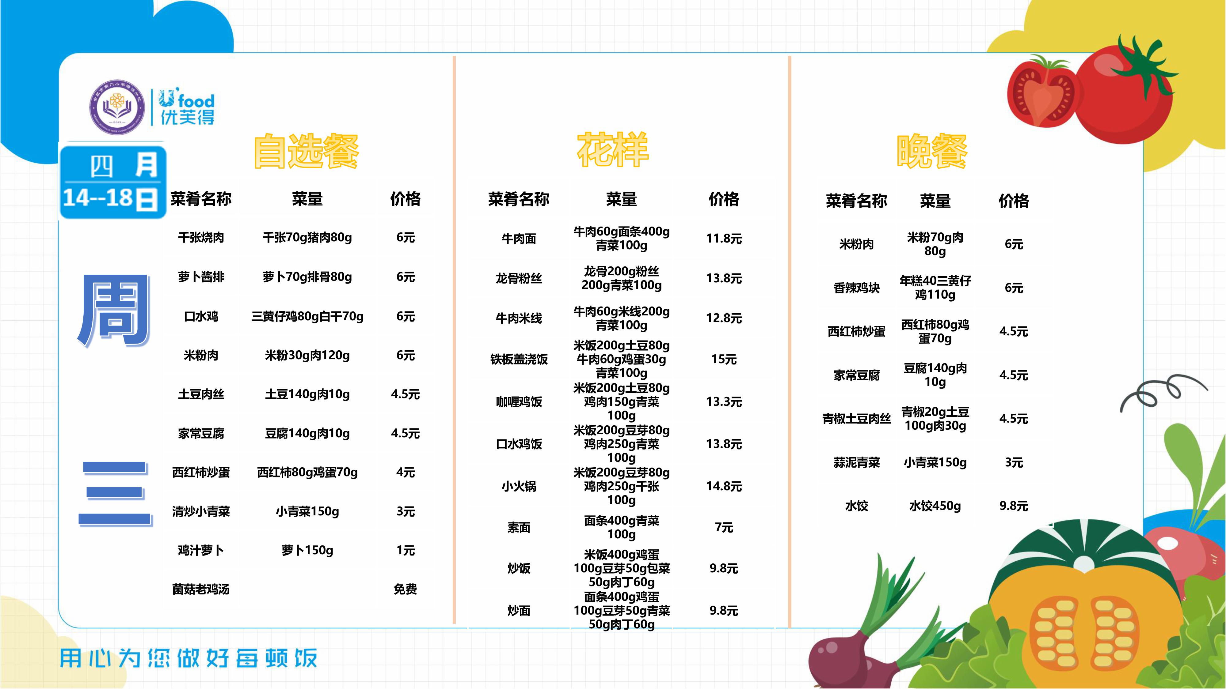 合肥四中四季堂2025年4月14日——4月18日一周食谱