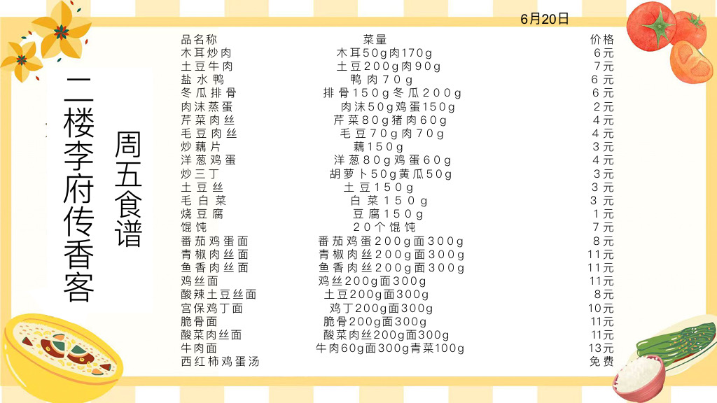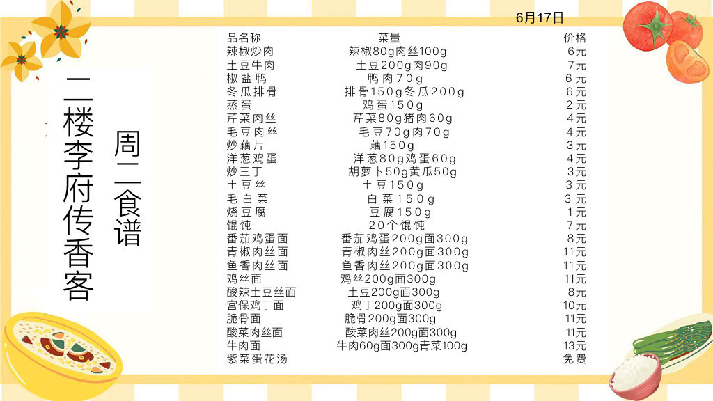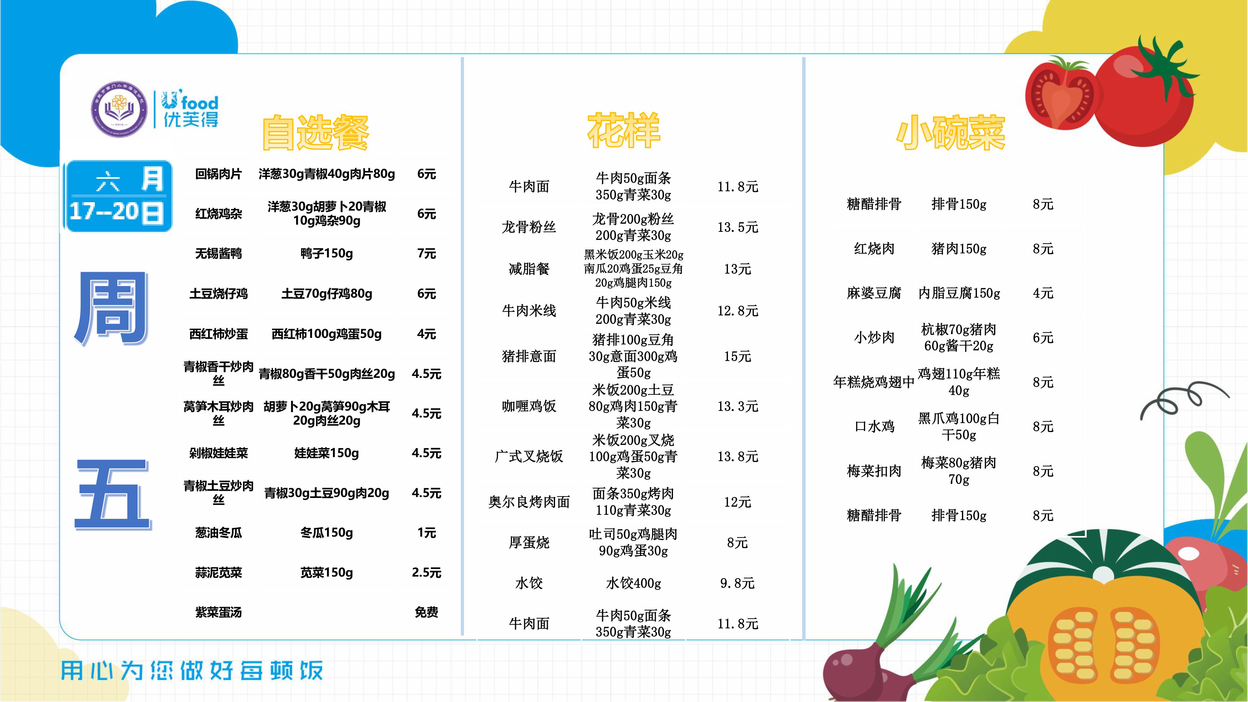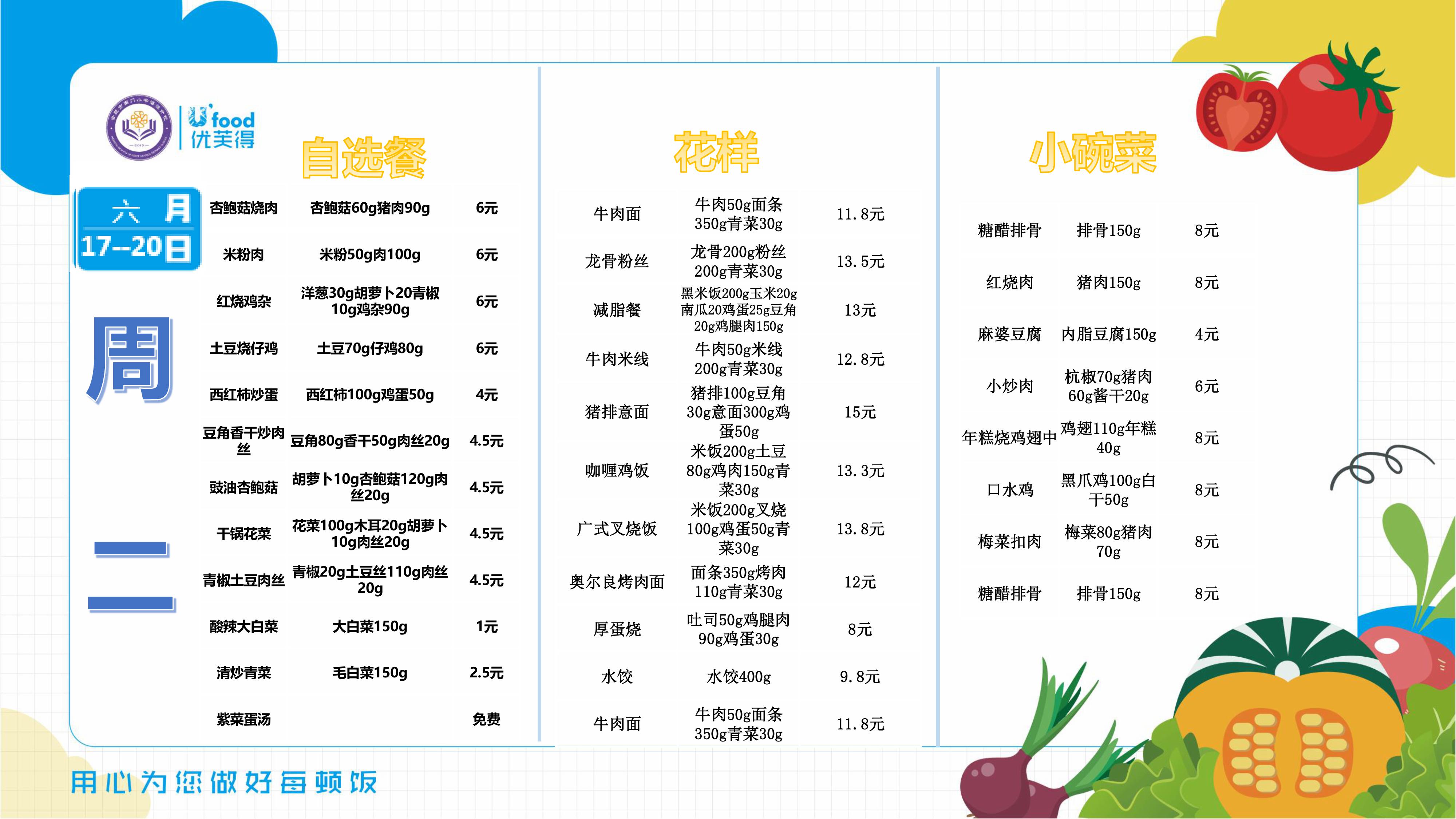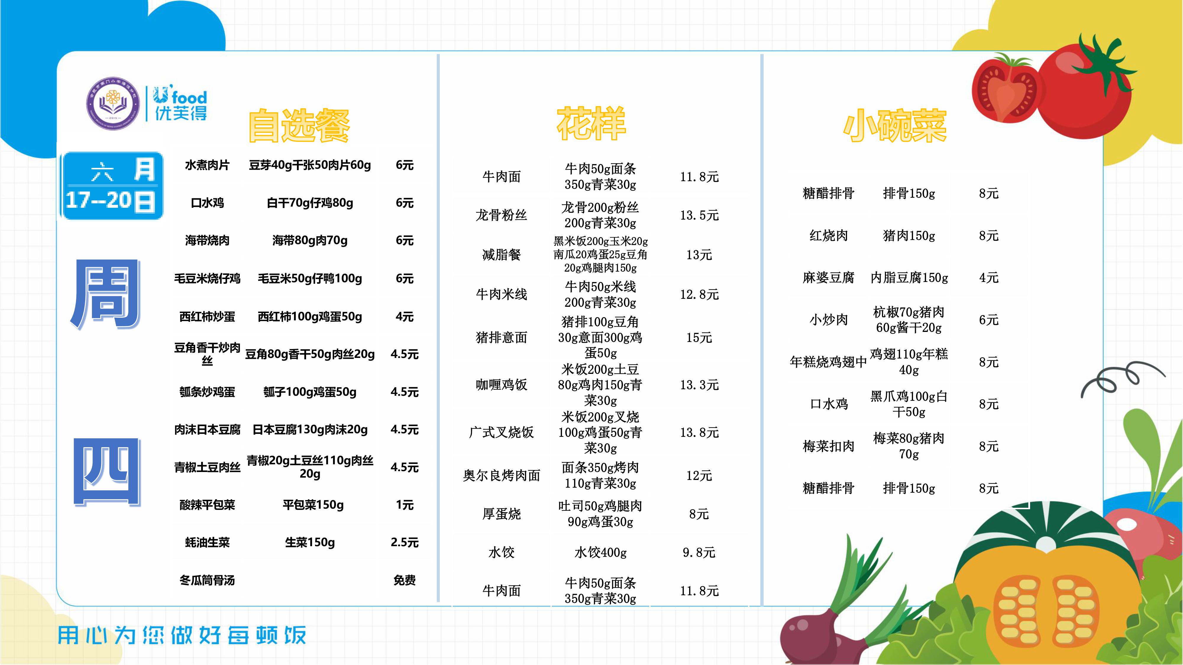 合肥四中四季堂2025年6月17日——6月20日一周食谱