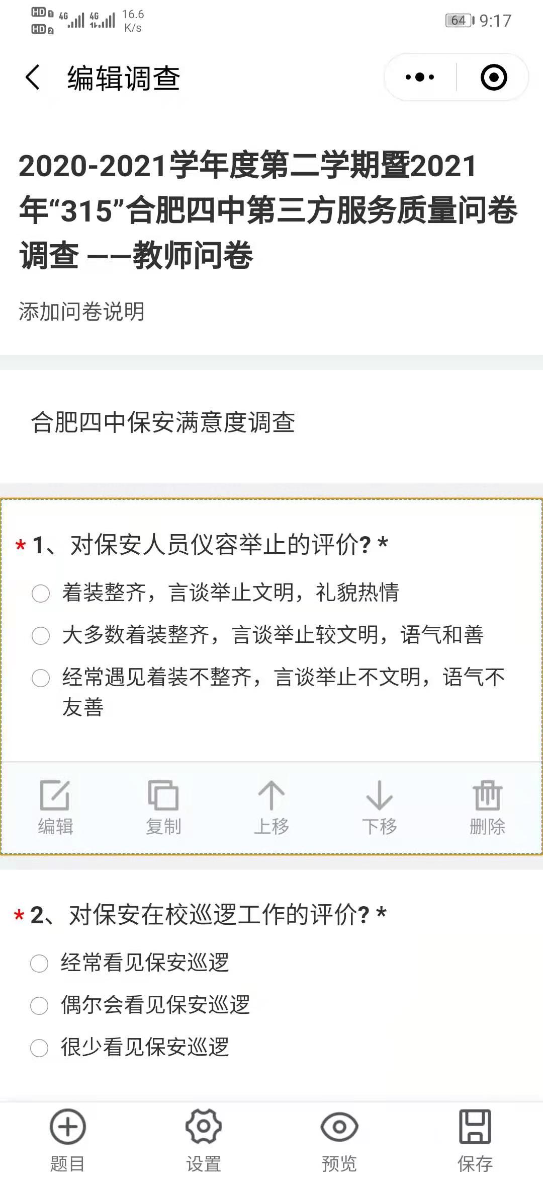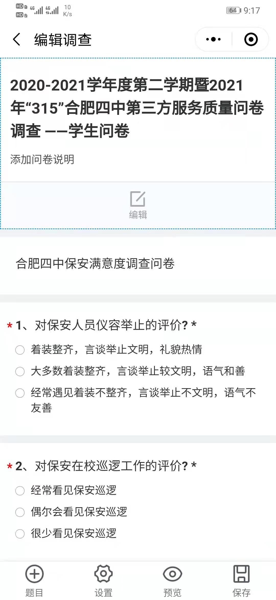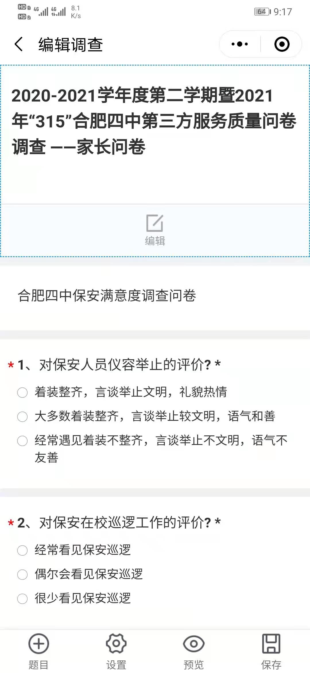 问卷调查有话说,服务质量我做主 ——合肥四中开展第三方服务机构“315”服务质量调查反馈活动