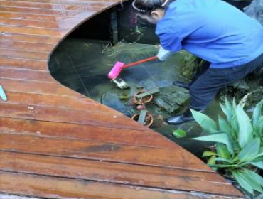 保洁人员在教学楼、中和会堂等处,进行了课桌清洁、角落处蜘蛛网清理和楼梯栏杆灰尘打扫;在校园园区内外,冲刷各个景观池的池壁、池底及景观石并换水,全面清洗消杀校园内的垃圾桶和消毒毯并进行晾晒,清捡附着在校园内外绿化带上的垃圾并外运;全面清扫地下车库的尘网和地面:他们用辛勤的汗水保持着校园内外优美的环境。