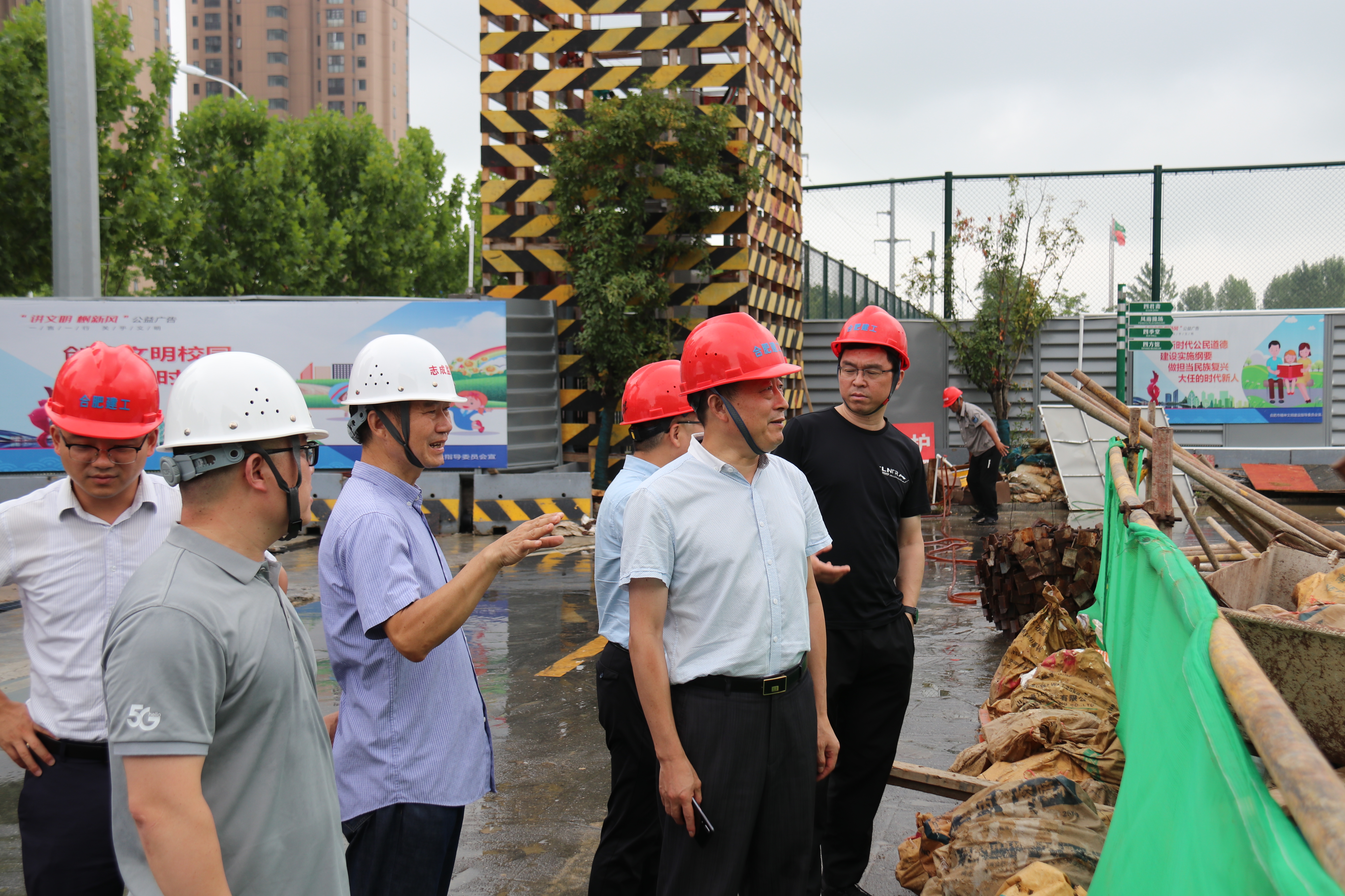 2022年7月29日,合肥市教育局副局长陆昌云视察了合肥四中新建男生宿舍楼项目,市教育局项目办副主任谈龙兵、孙东升等陪同,合肥四中副校长彭强、总务主任程家飞,项目监理单位负责人周宗令,施工单位项目管理人员等现场作了汇报。
