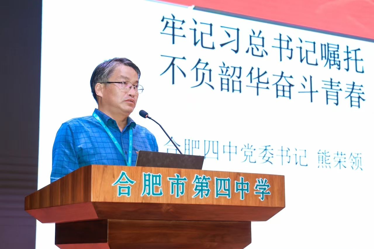 最后,熊荣领为全体团员、入团积极分子讲授《牢记习总书记嘱托,不负韶华奋斗青春》主题团课。熊荣领向大家系统介绍了习近平新时代中国特色社会主义思想的世界观和方法论,即必须坚持人民至上,坚持自信自立,坚持守正创新,坚持问题导向,坚持系统观念,坚持胸怀天下。熊荣领紧密结合习近平总书记的重要讲话内容,以深厚的理论素养和丰富的教育工作经验,通过详实的案例和生动的授课语言,与全体团员、入团积极分子分享了学习习近平新时代中国特色社会主义思想的感悟,为合肥四中团员青年、入团积极分子上了一节生动而深刻的团课、指明了前进的方向。全校先进青年欢聚一堂,共同经历了一次思想的洗礼和精神的升华。