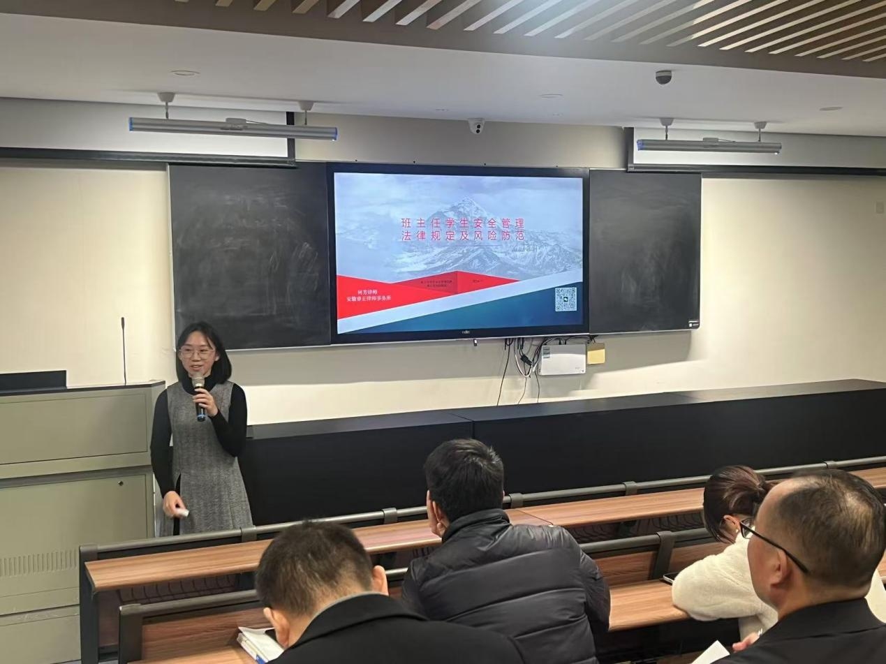 2024年11月24日晚,合肥四中德育“一月一主题”全体班主任培训会于四端楼一楼合班教室举行,本期合肥四中邀请合肥市教育局法务何芳律师开展《班主任学生安全管理法律规定及风险防范》讲座。
