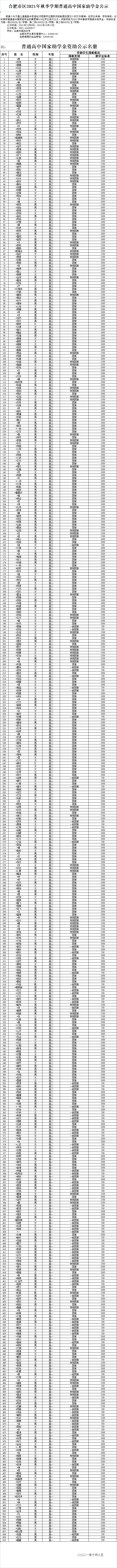 合肥市第四中学2021年秋季学期国家助学金名单公示