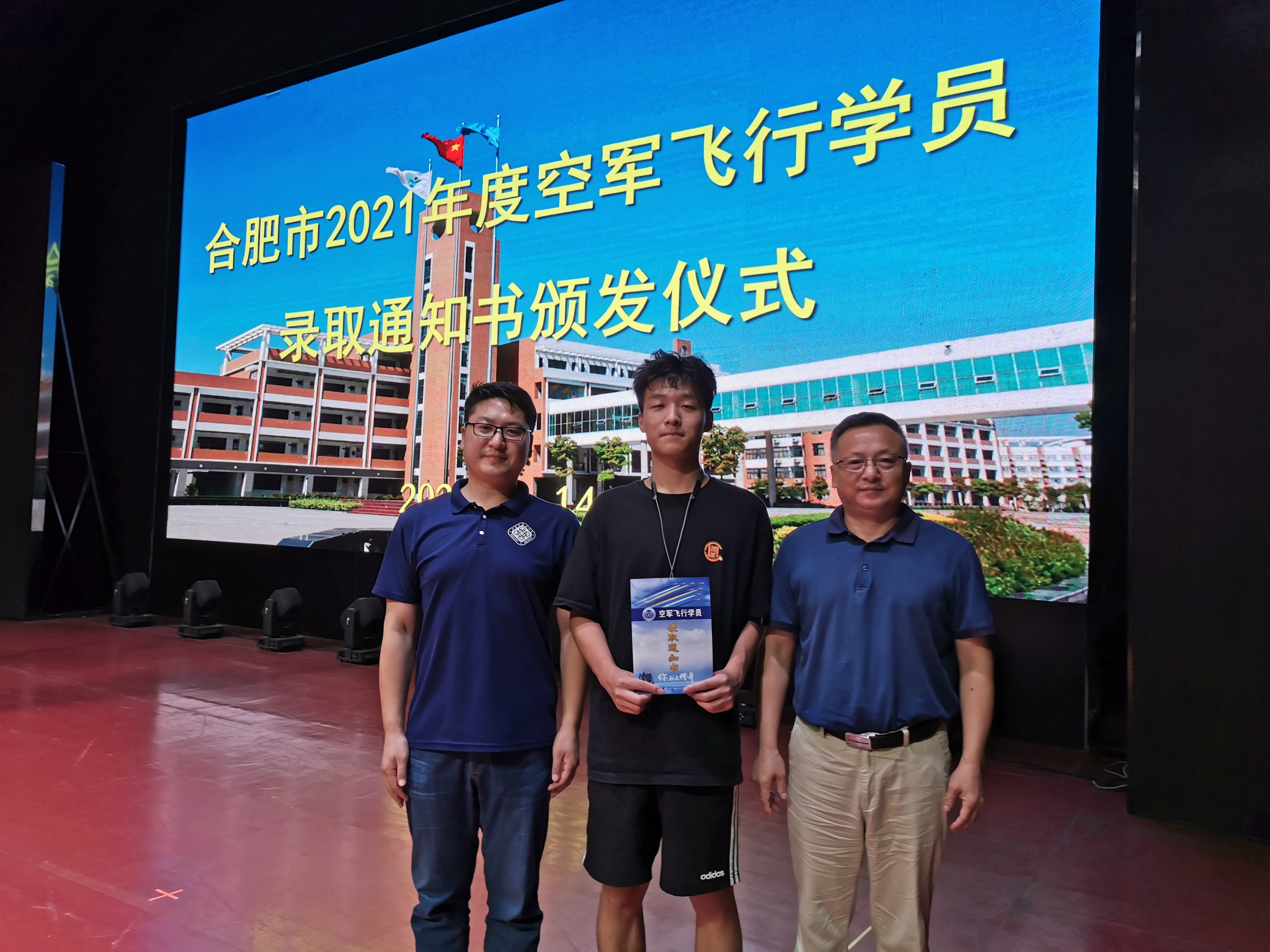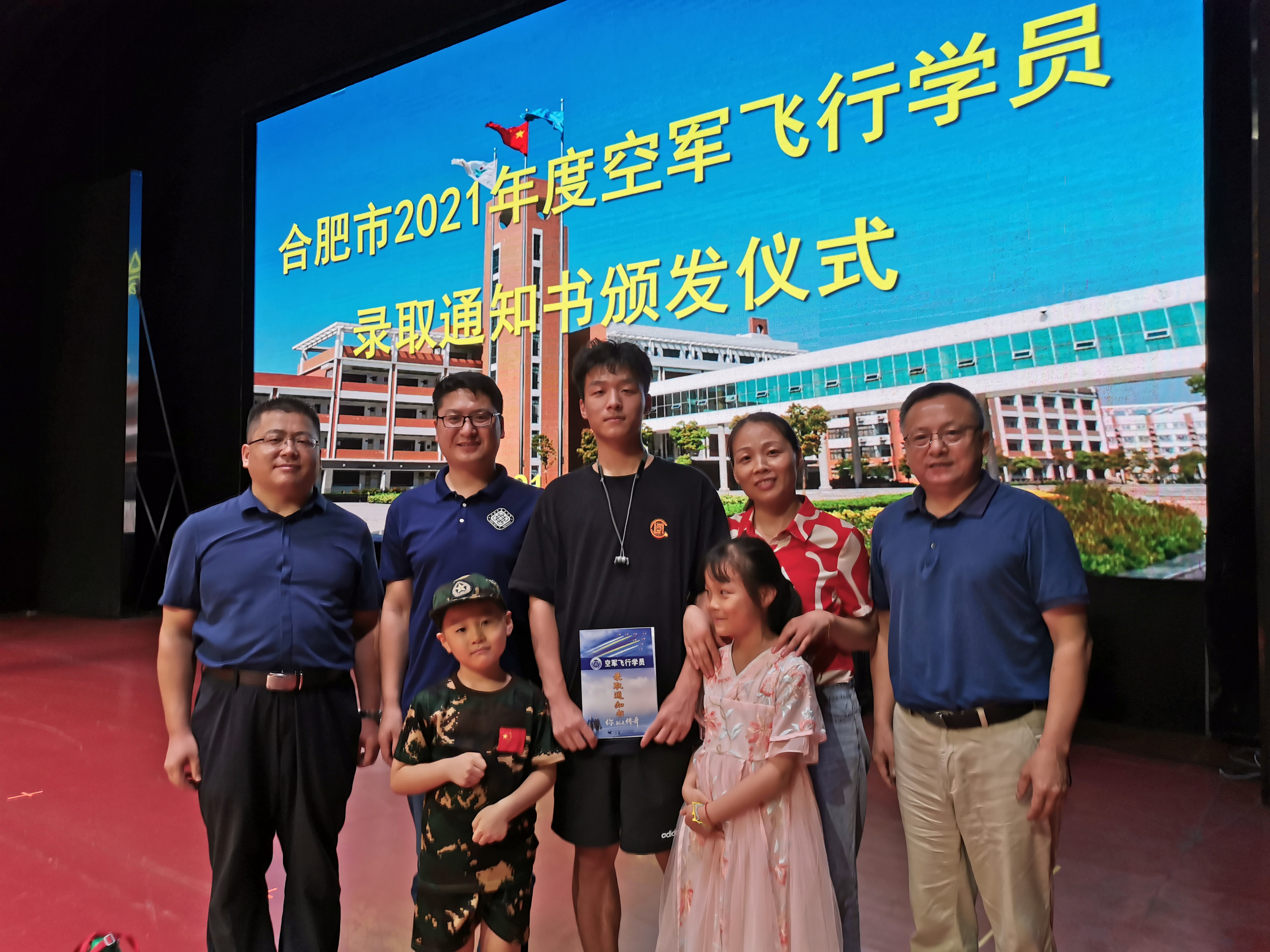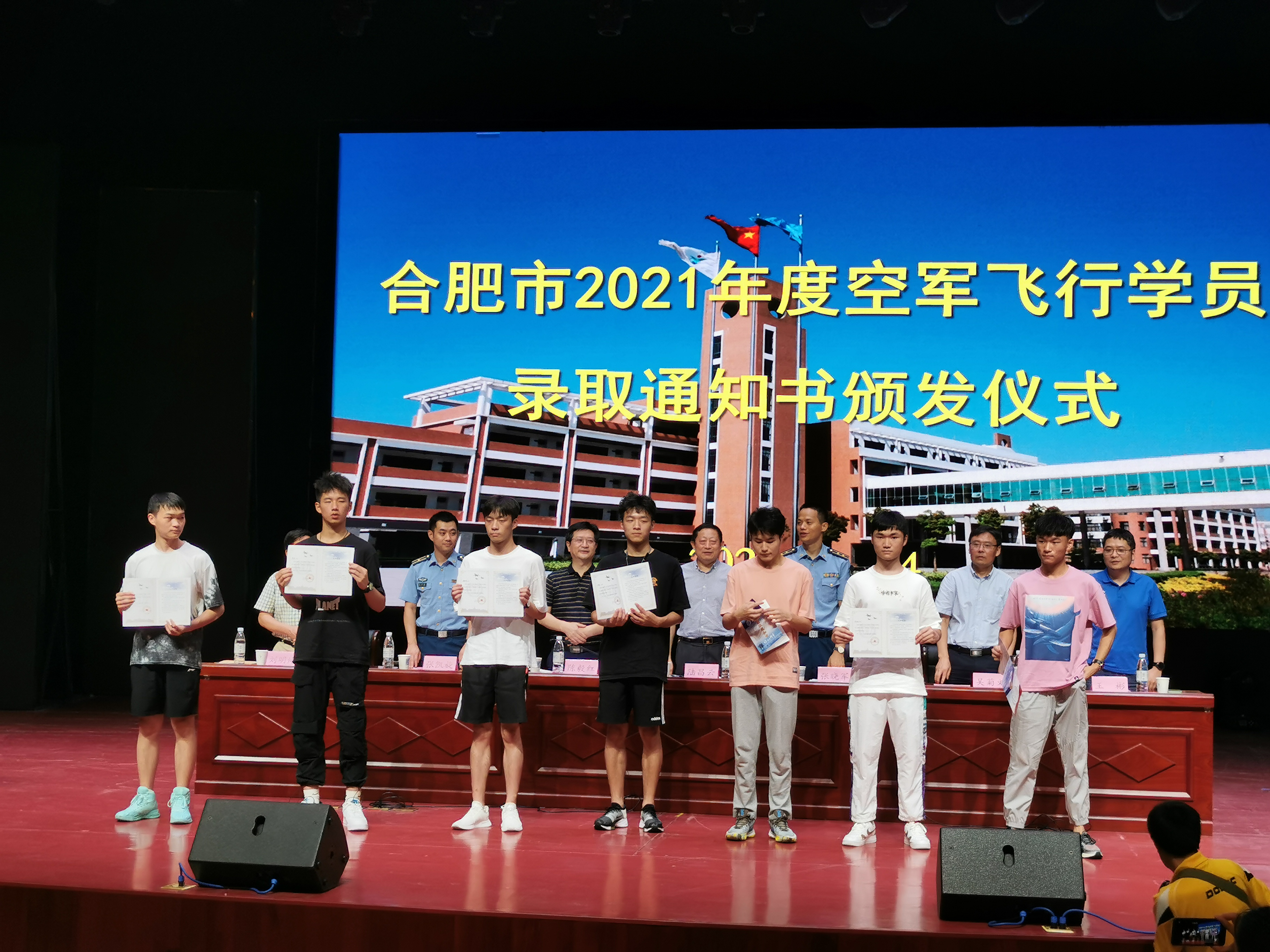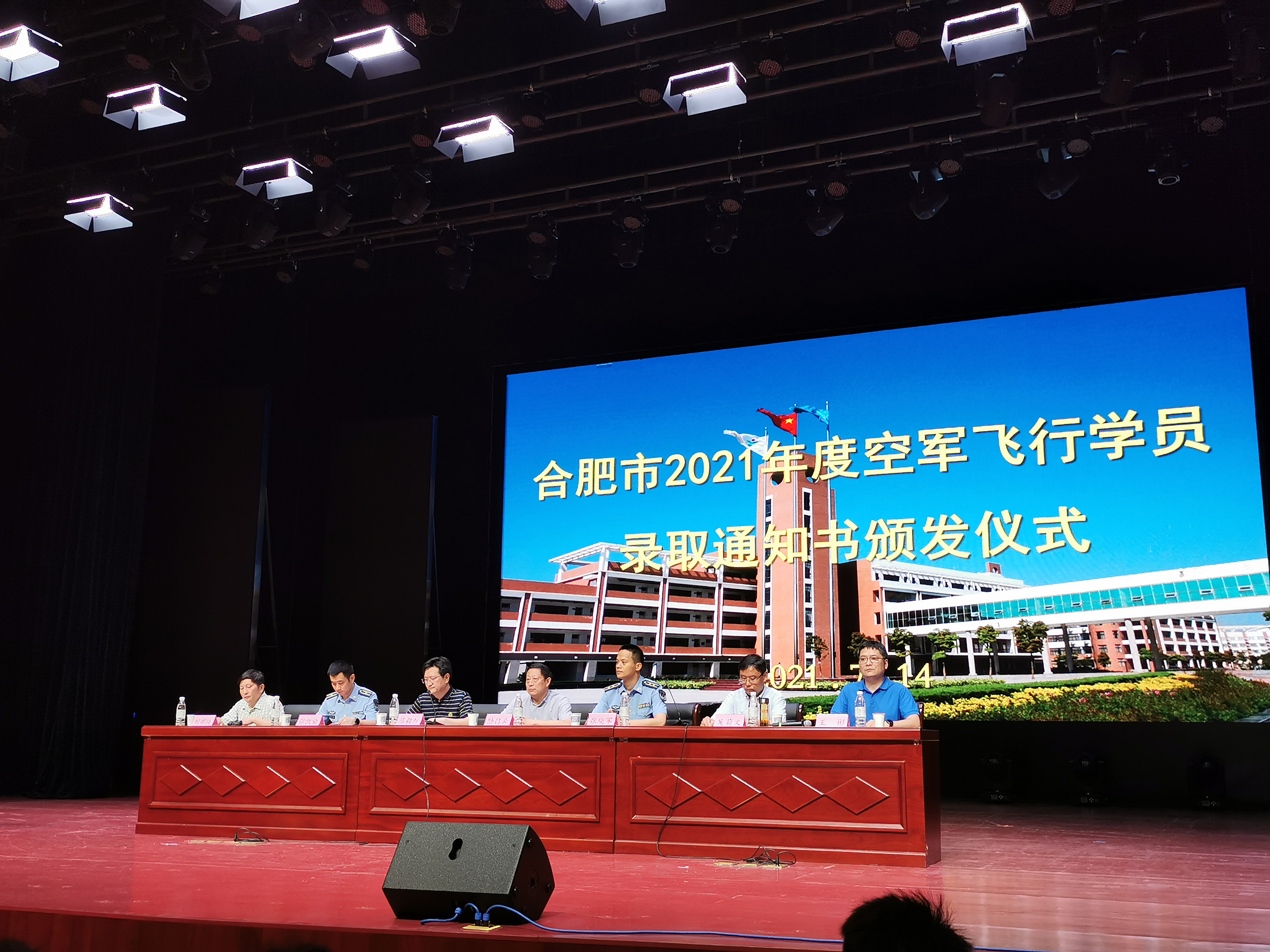 7月14日,合肥市2021年度空军飞行学员录取通知书颁发仪式在合肥一六八中学举行。合肥市教育局党委委员、副局长陆昌云出席大会并作总结讲话,空军招飞局南京选拔中心、合肥市考试院、合肥一六八中学等单位领导出席大会。合肥四中副校长李昌年带领高三年级部主任许超、1811班方都一同学及家长参加仪式。仪式由合肥市考试院院长陈毅红主持。