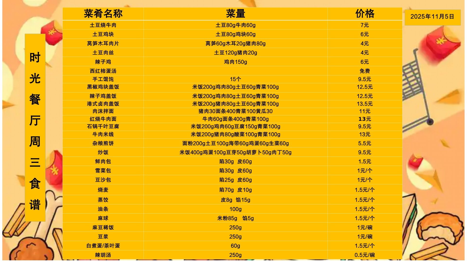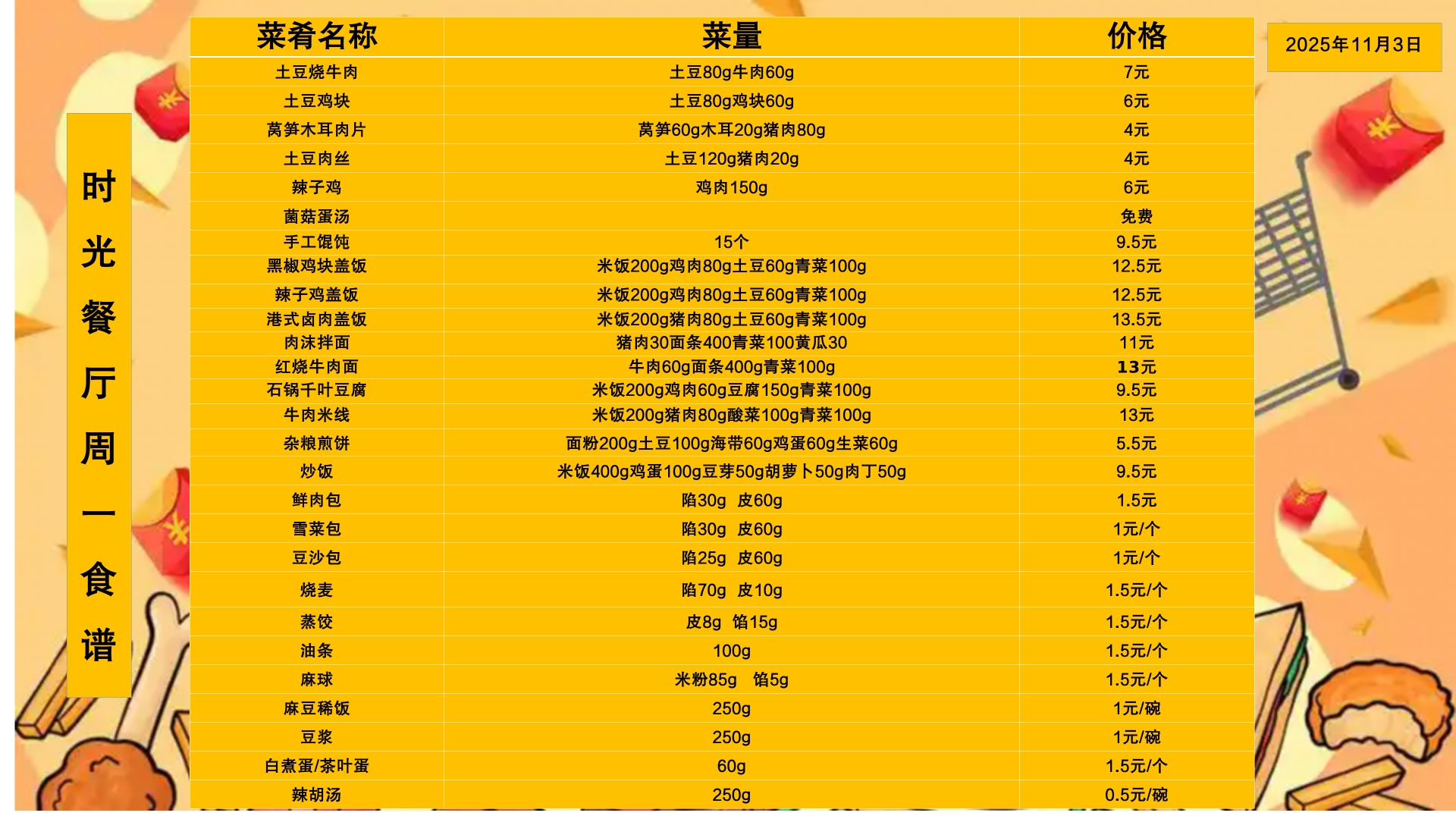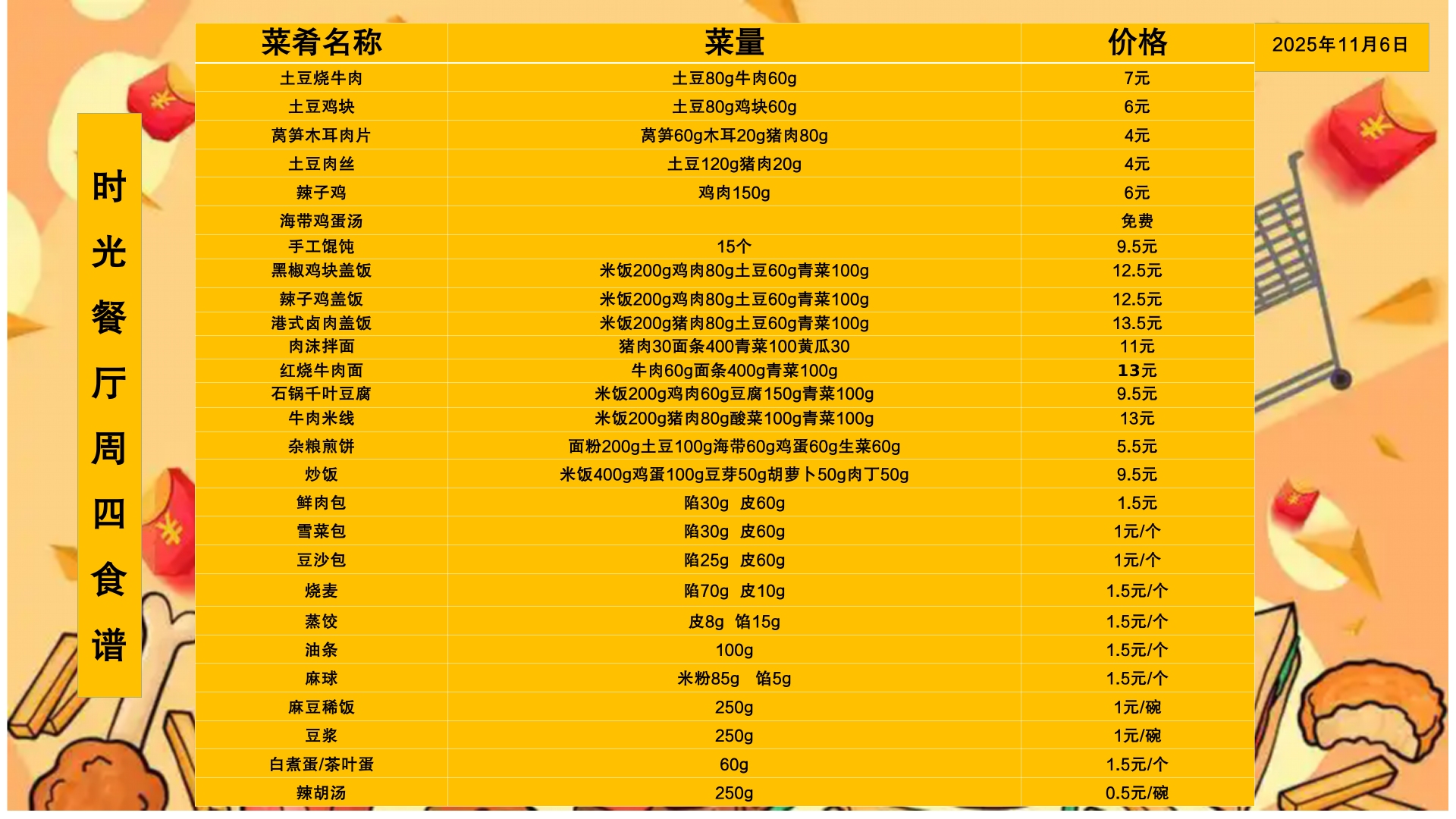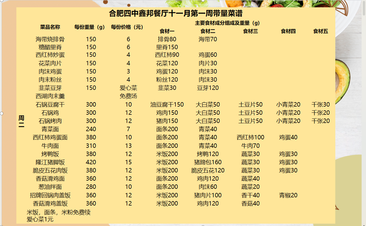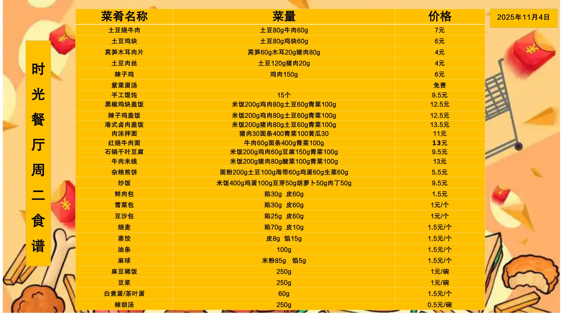 合肥四中四季堂2025年11月3日——11月7日一周食谱