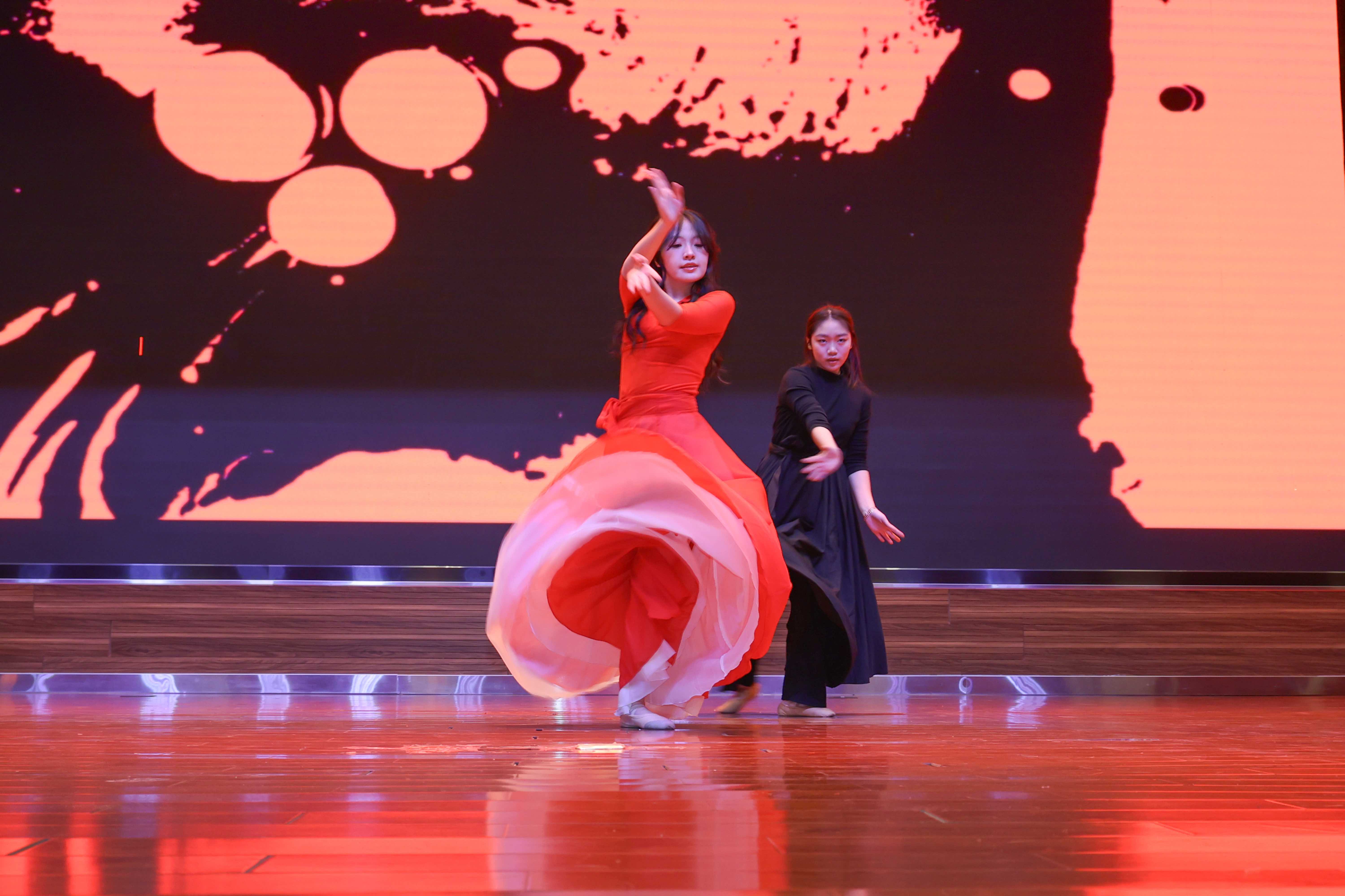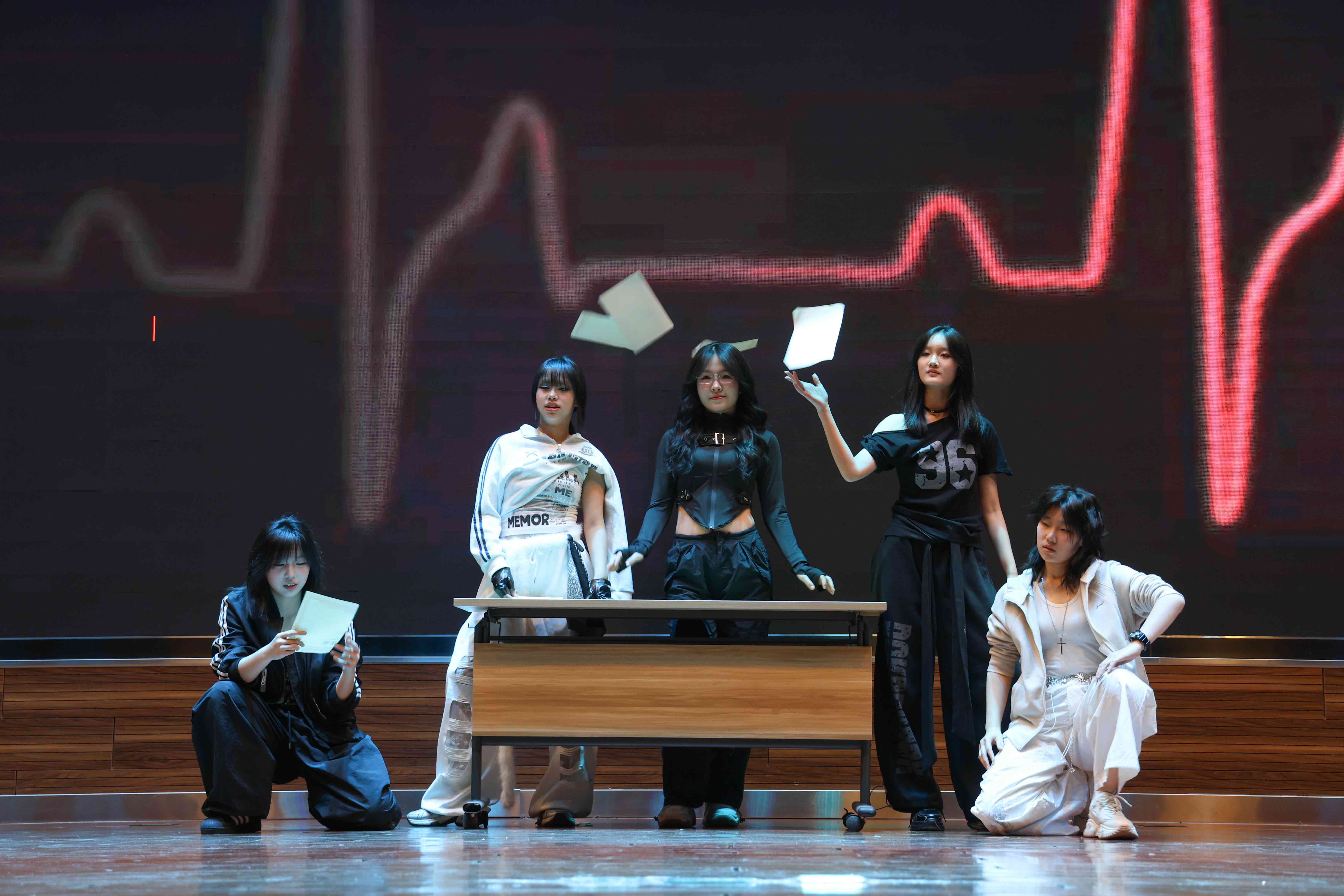 第三篇章“融合创新·舞韵新生”聚焦艺术跨界与文化传承:爵士《借来的猫》捕捉生活小确幸,诠释青春初见的懵懂;国风爵士《时候》将传统雅韵与现代节拍碰撞,水袖轻扬间绽放独特火花;《Armageddon》冲破桎梏,以力量舞姿掀起视觉风暴;《Sugar rush ride》在诱惑浪潮中坚守自我,做青春的舵手;中国舞《芳华》以红色旋律重现烽火年代的青春理想,用赤子之心承革命精神;《Gee》诠释青春期懵懂,如银杏树下斑驳光影般明媚动人。