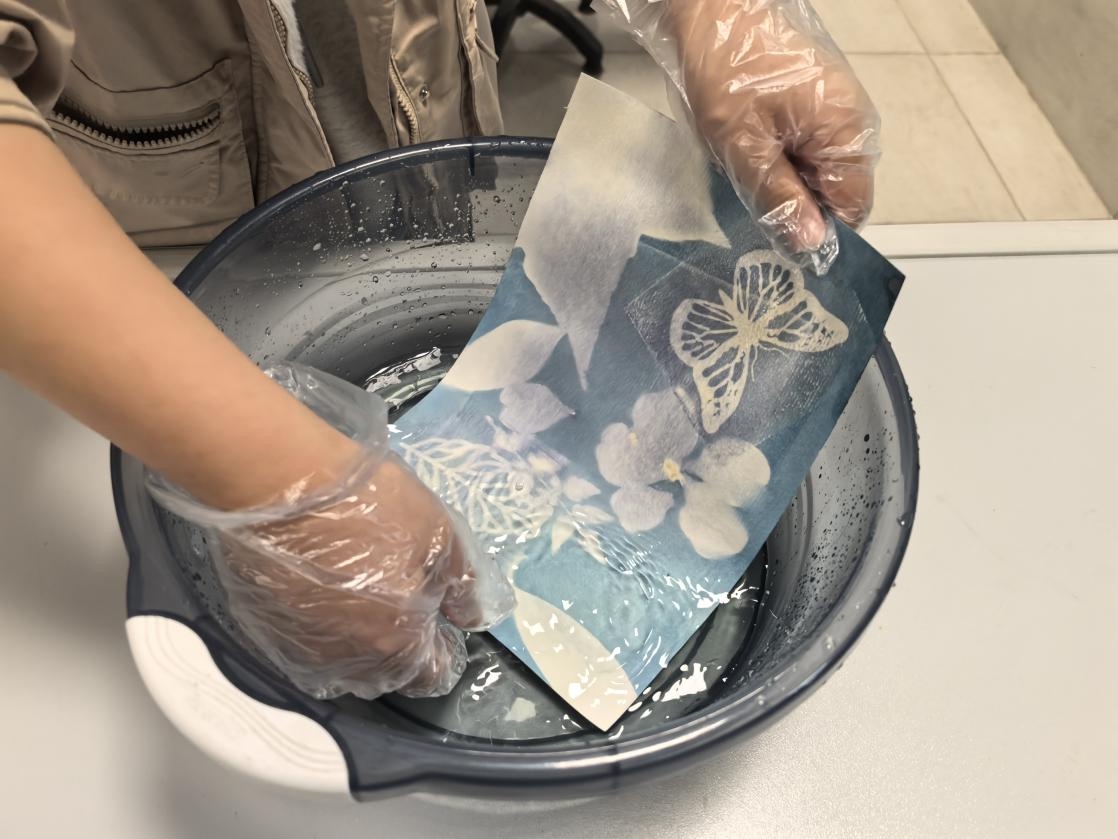 社员们将化学知识融入手工创作:天然植物精油手工皂通过控制碱液比例塑形,兼具清洁与护肤功效;蓝晒工艺利用光敏反应,将银杏叶、樱花标本定格成深蓝艺术画;拼豆钥匙扣则以卡通符号为主题,吸引师生兴趣。
